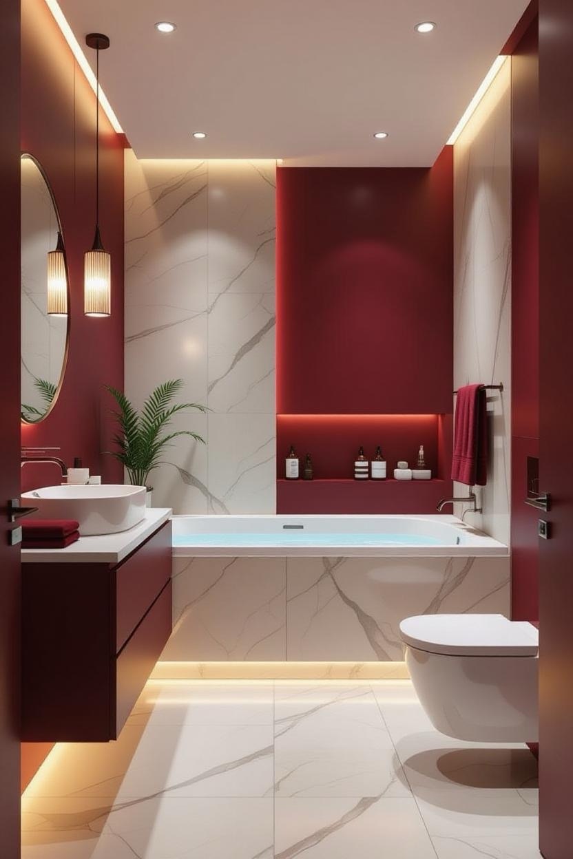 Burgundy is bold, dramatic, and elegant, making it a great choice for a standout bathroom look that feels both modern and timeless.
