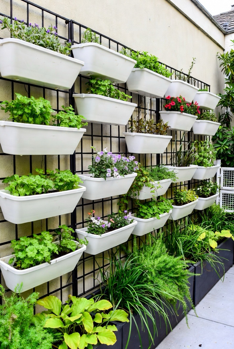 Vertical garden walls are perfect for saving ground space while adding lush greenery. By growing plants upward using wall-mounted planters or trellises, you create a living backdrop without crowding the yard. This approach adds texture, privacy, and visual interest, making small backyards feel vibrant and layered. Choose herbs, trailing plants, or flowering vines to enhance both beauty and function.