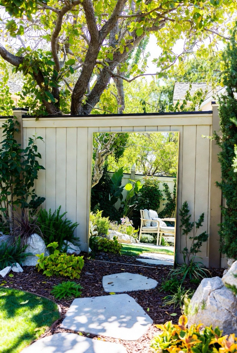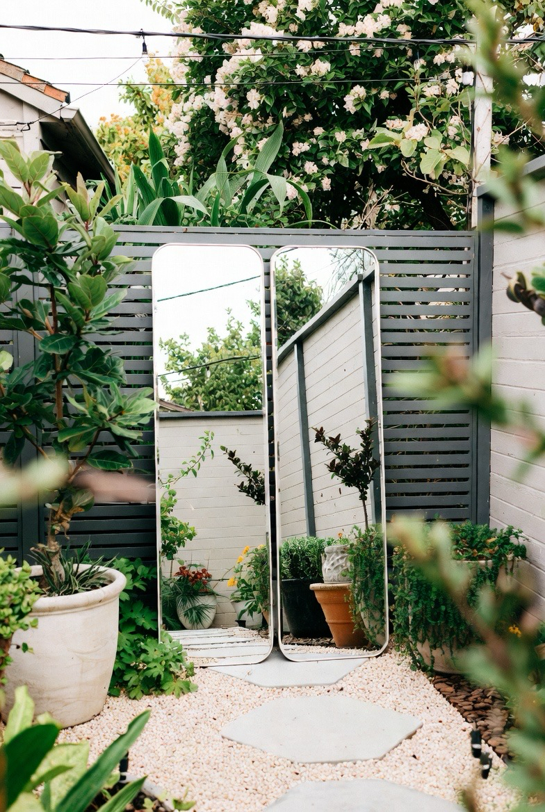 Outdoor mirrors reflect greenery and light, visually expanding the space. Placed strategically on fences or walls, they create the illusion of a larger garden. Choose weather-resistant mirrors with simple frames for a subtle, stylish effect.
