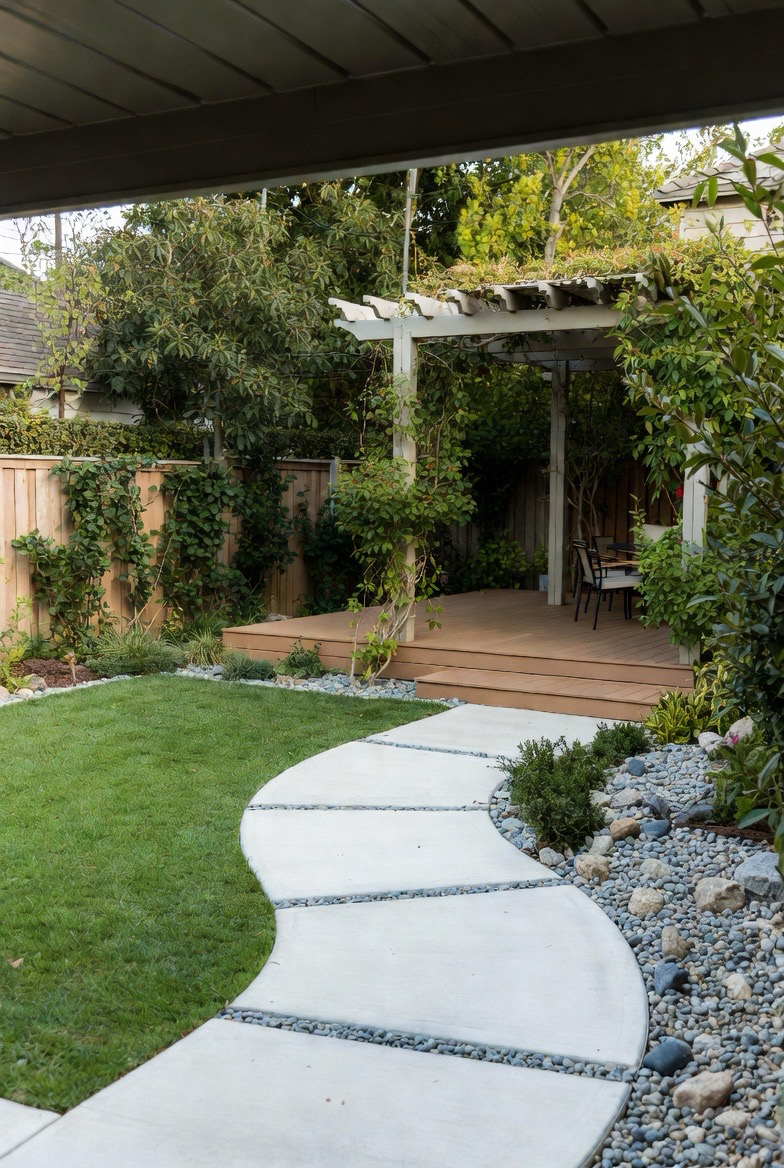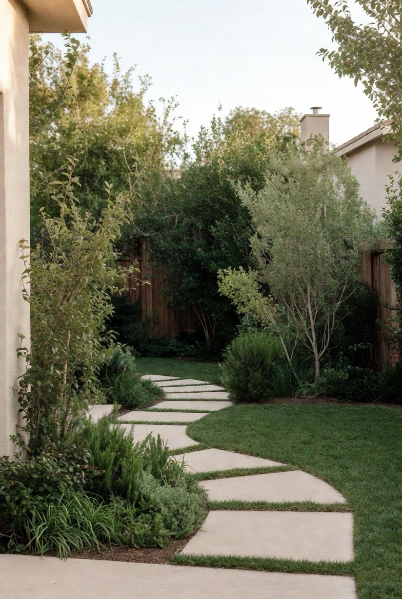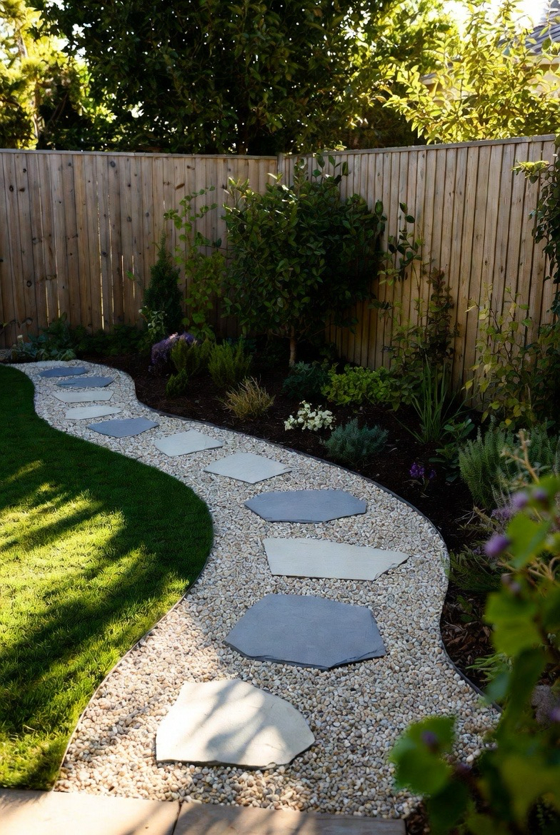 Slim pathways guide movement without taking over the yard. Stepping stones or gravel paths add charm while preserving valuable space. Curved paths create a sense of flow, making the backyard feel more dynamic and spacious.