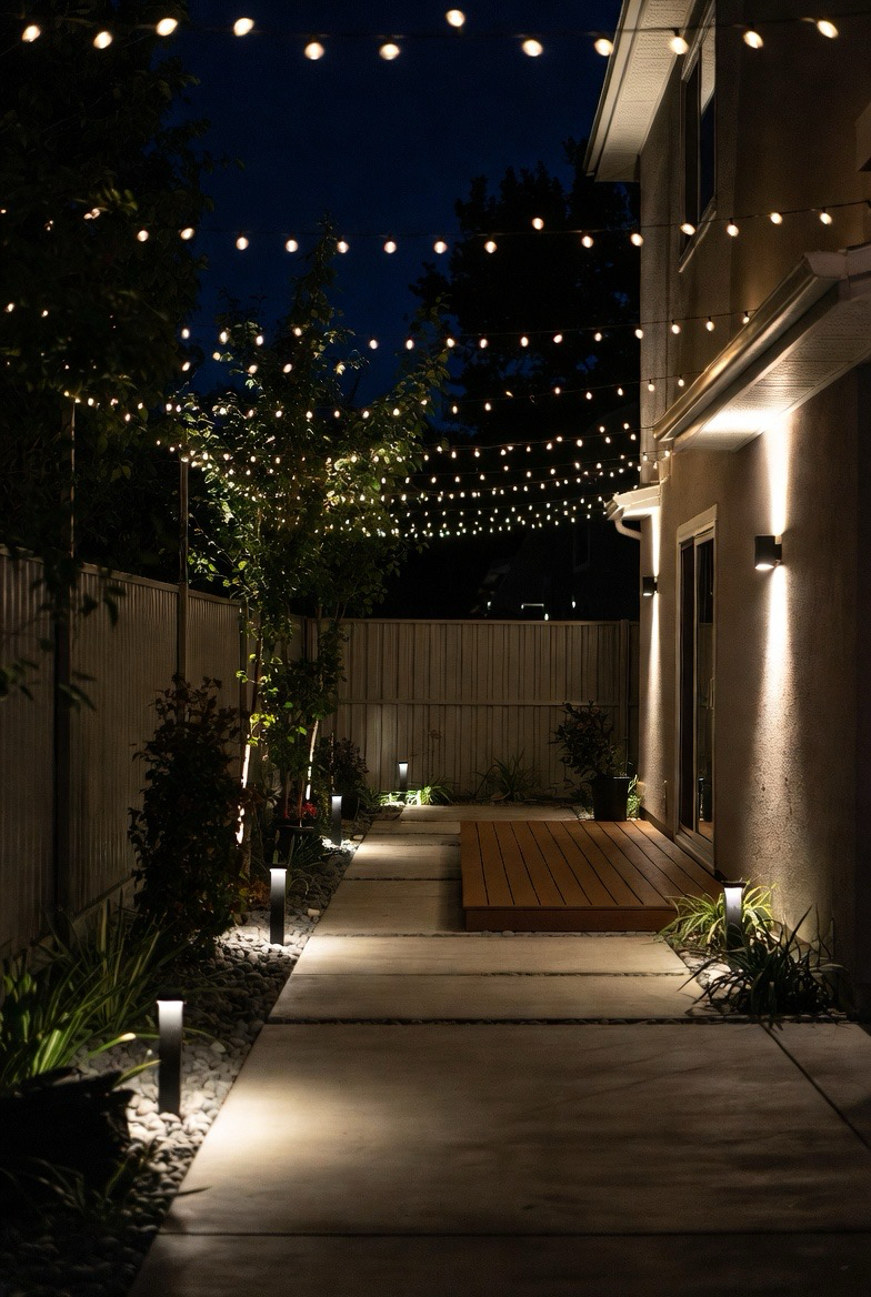 Strategic lighting makes small backyards feel inviting and expansive at night. Use a mix of wall lights, string lights, and ground lighting to add depth. Soft lighting highlights features and creates a cozy atmosphere without overwhelming the space.