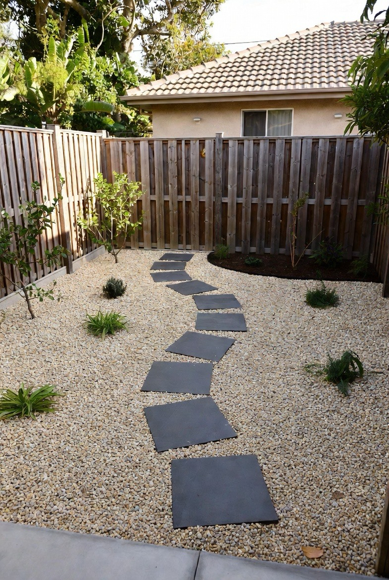 Gravel is a smart alternative to grass in small backyards. It’s low-maintenance, visually light, and easy to customize. Paired with plants and stepping stones, gravel creates a modern, spacious look.