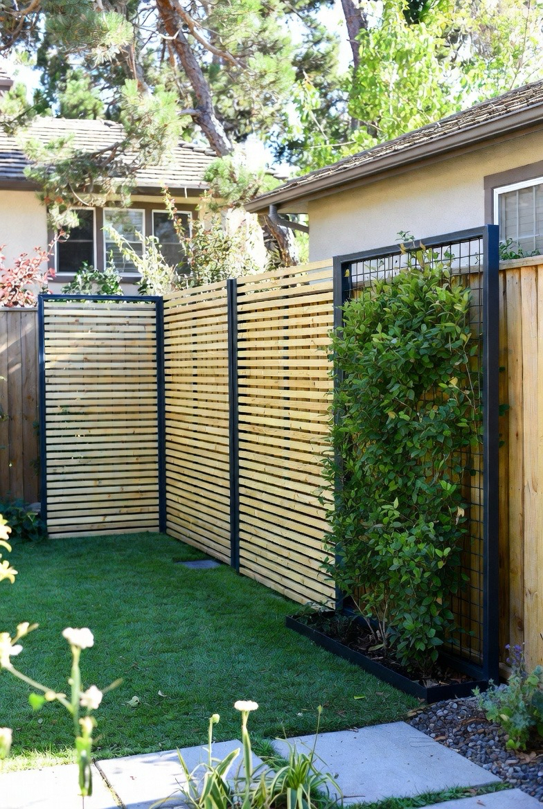 Slim privacy screens provide seclusion without blocking light. Choose wood slats, metal panels, or greenery screens for a stylish boundary. They add structure while keeping the backyard open and airy.