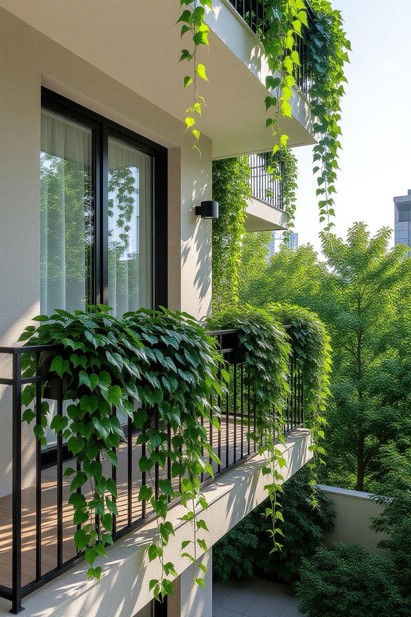 Bring timeless beauty to your balcony with cascading ivy. This low-maintenance plant drapes beautifully over railings, instantly softening harsh lines and adding a touch of elegance. Ivy thrives in partial shade, making it perfect for balconies in tall buildings where sunlight may be limited.