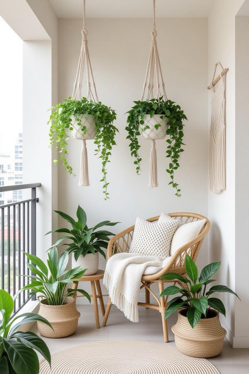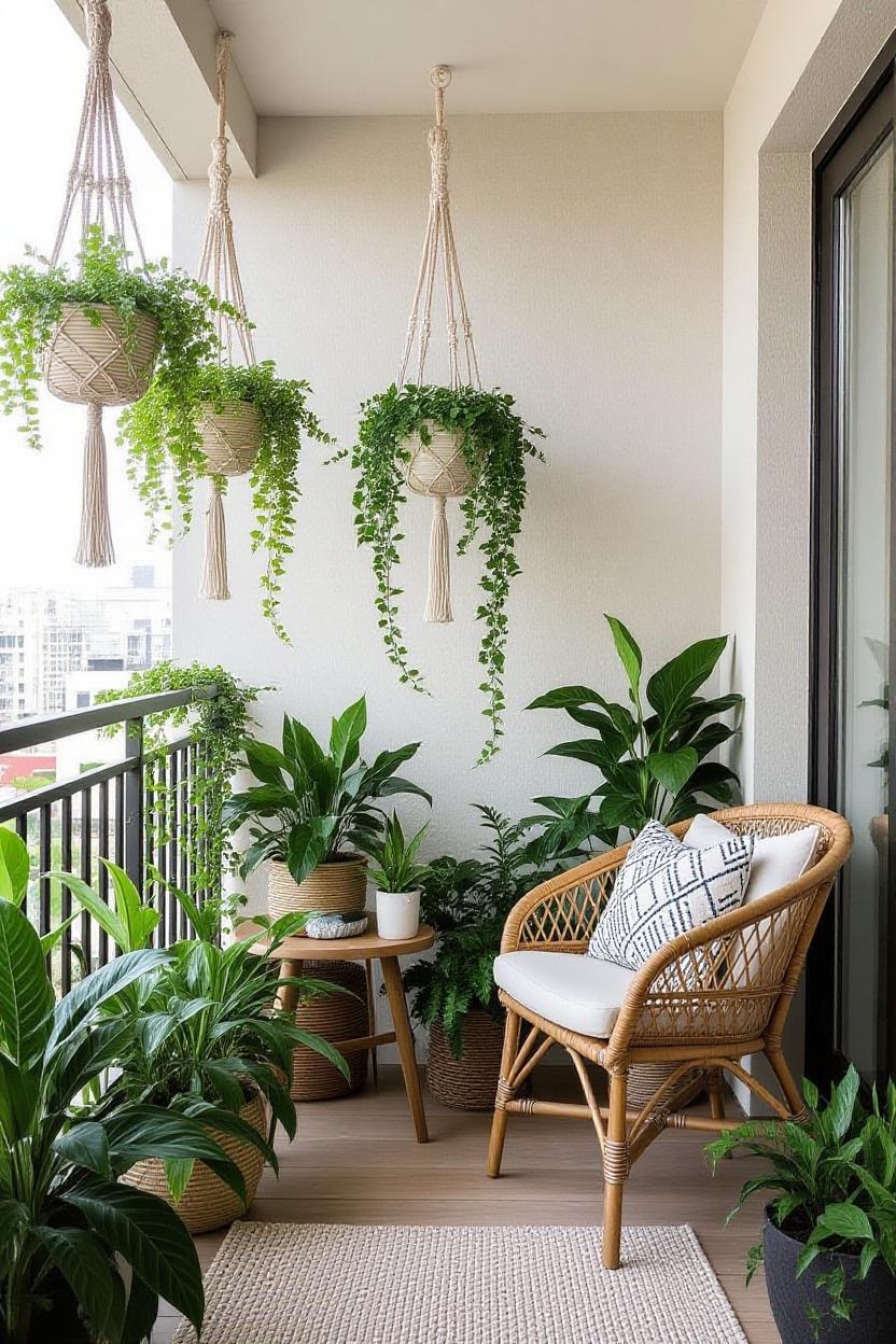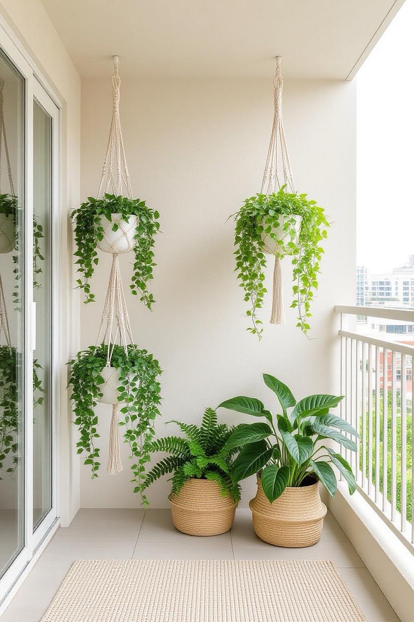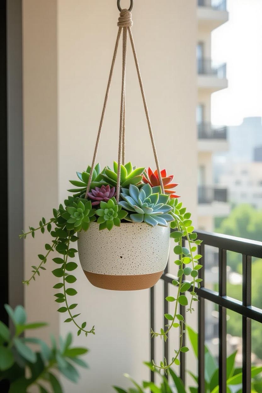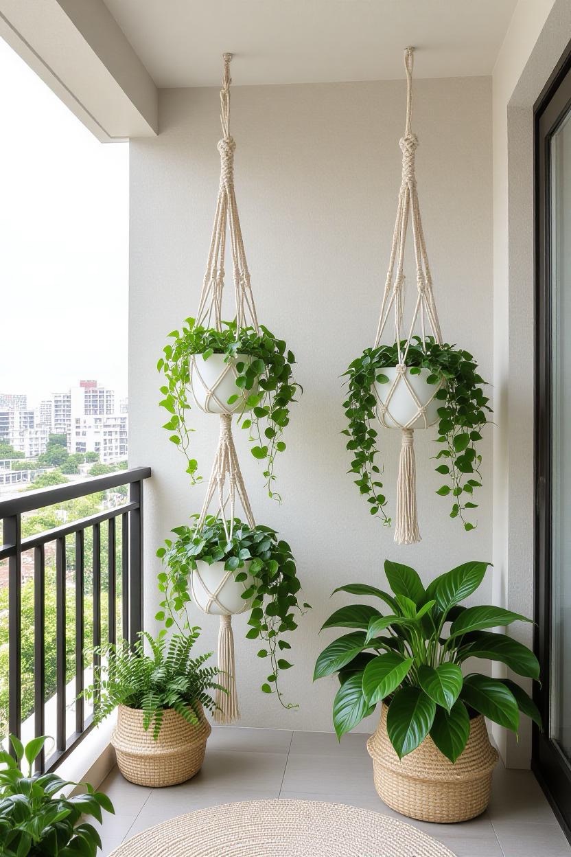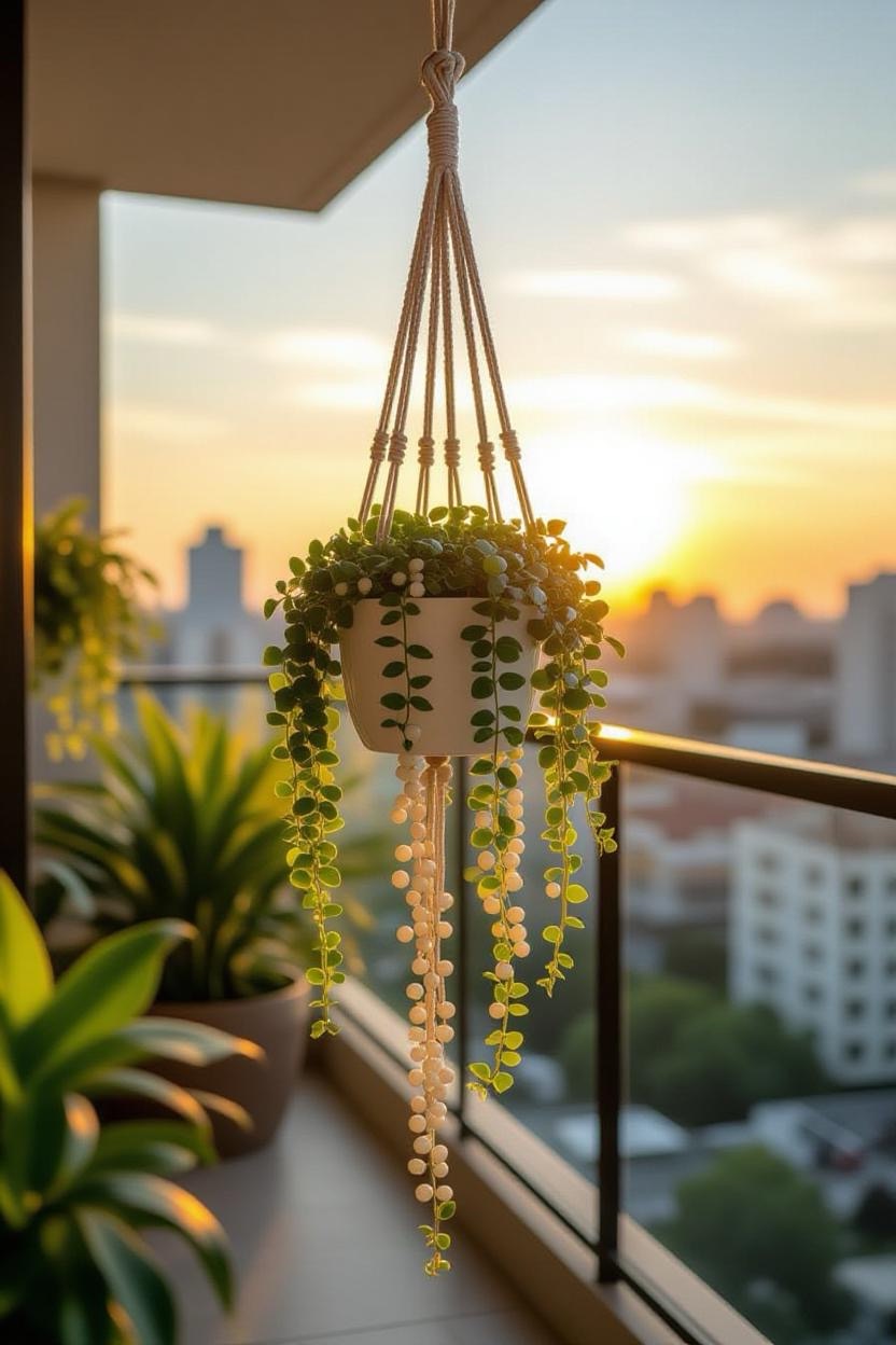 Upgrade your balcony’s style with macramé plant hangers. Pair them with cascading plants like pothos or philodendron to create a boho-chic look that feels artistic and cozy.