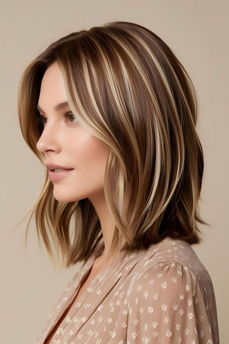 Light brown hair shines—chocolate lowlights add depth to the base; weave darker strands throughout, keep it subtle, and craft a rich, warm style with a grounded feel.