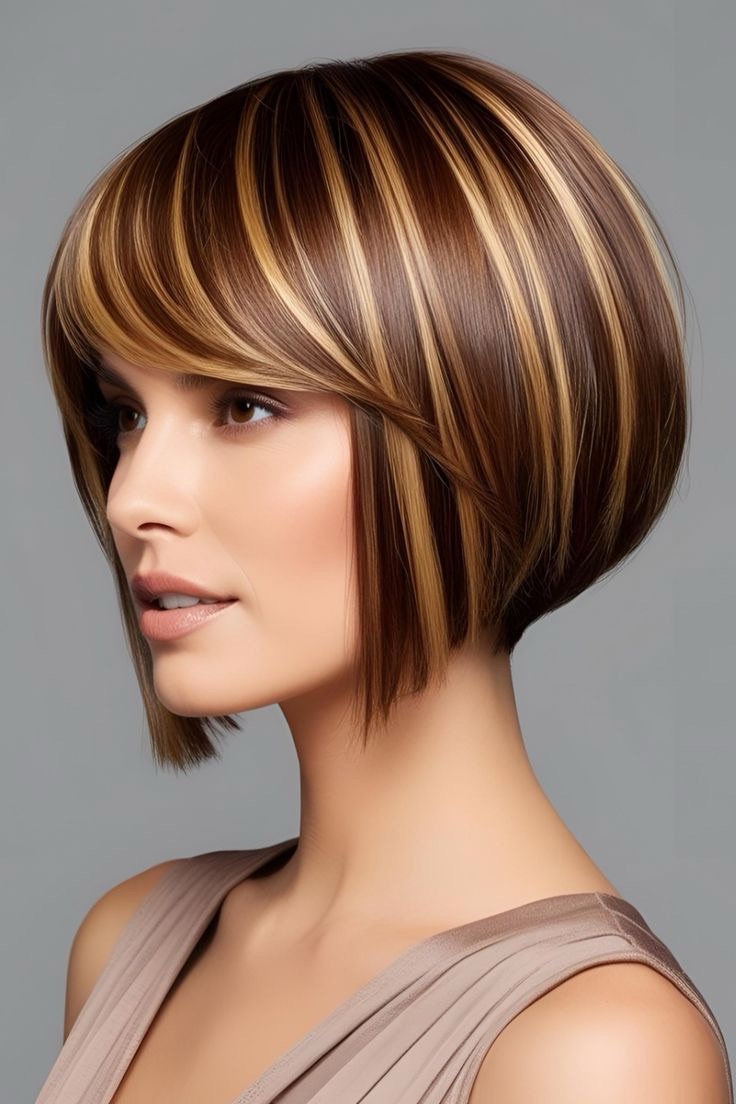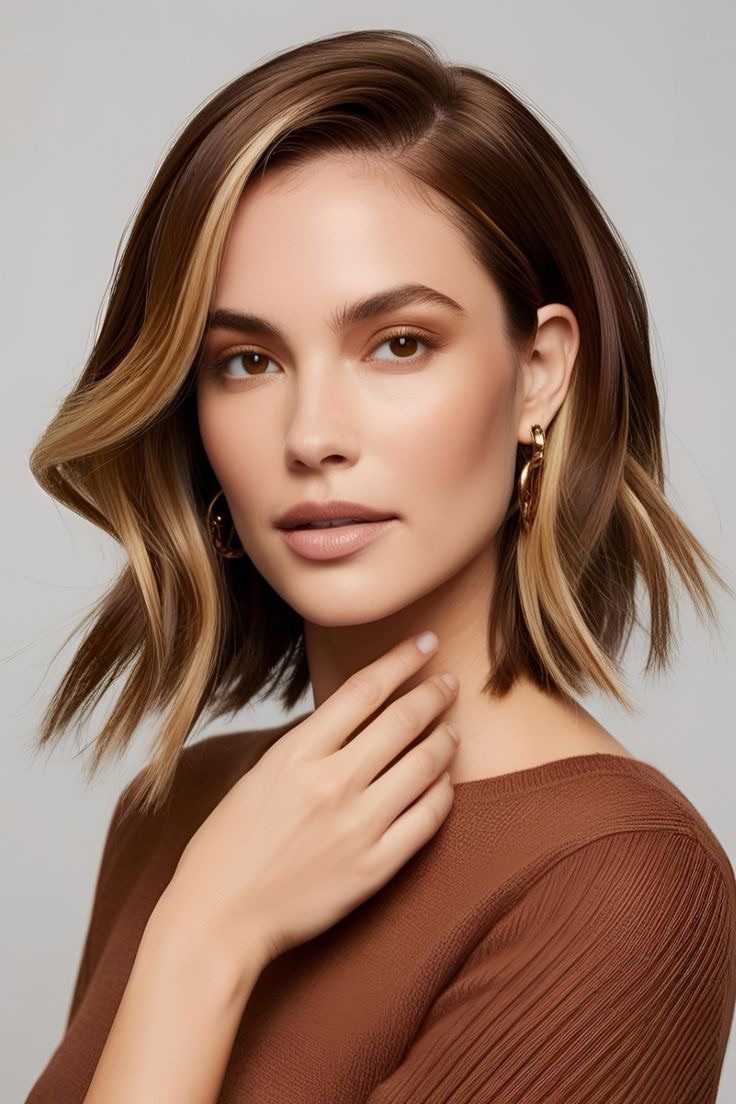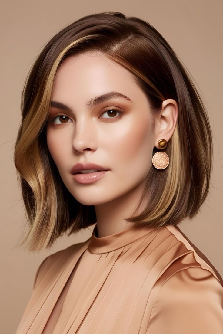 Light brown hair glows—honey highlights brighten a bob cut; scatter golden streaks throughout, add taupe lowlights, and craft a chic, radiant look for short hair.