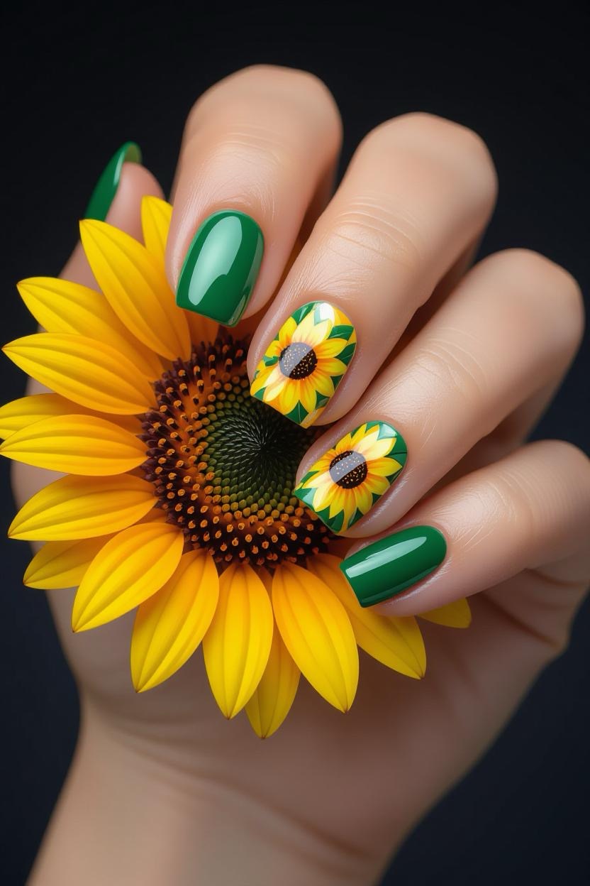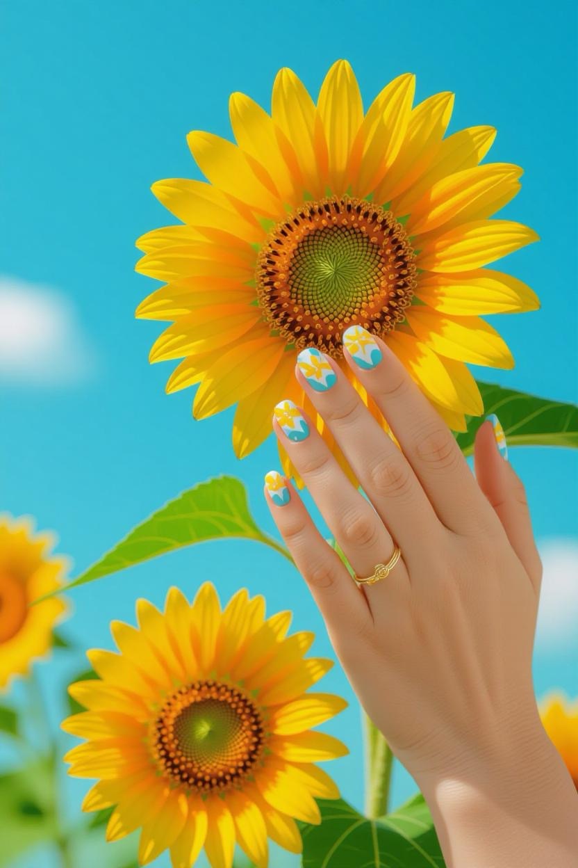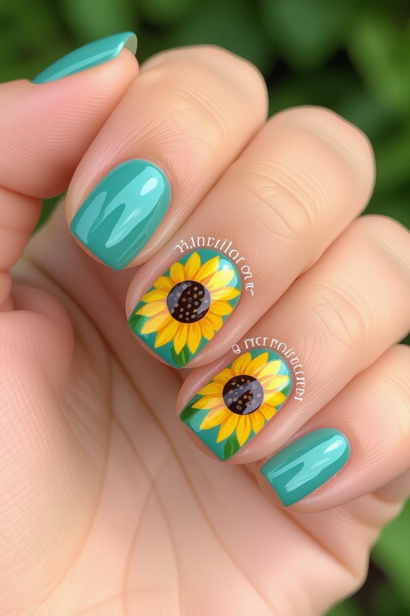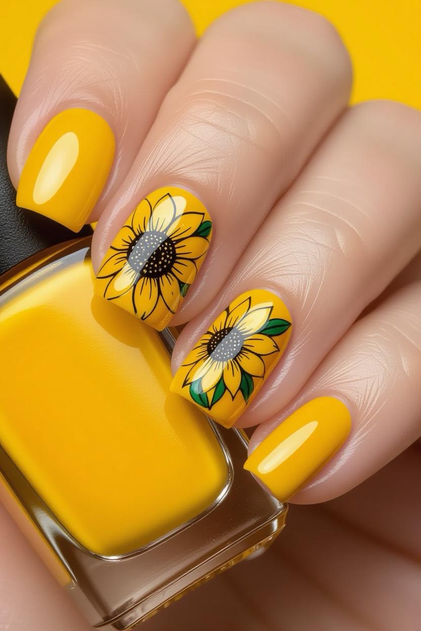 If you prefer minimalism, paint one accent nail with a sunflower while keeping the rest in a complementary solid color.