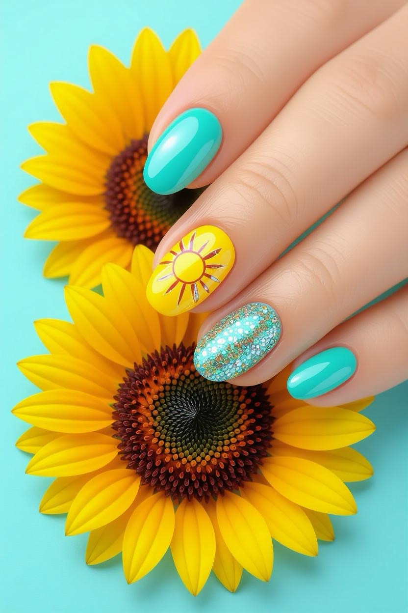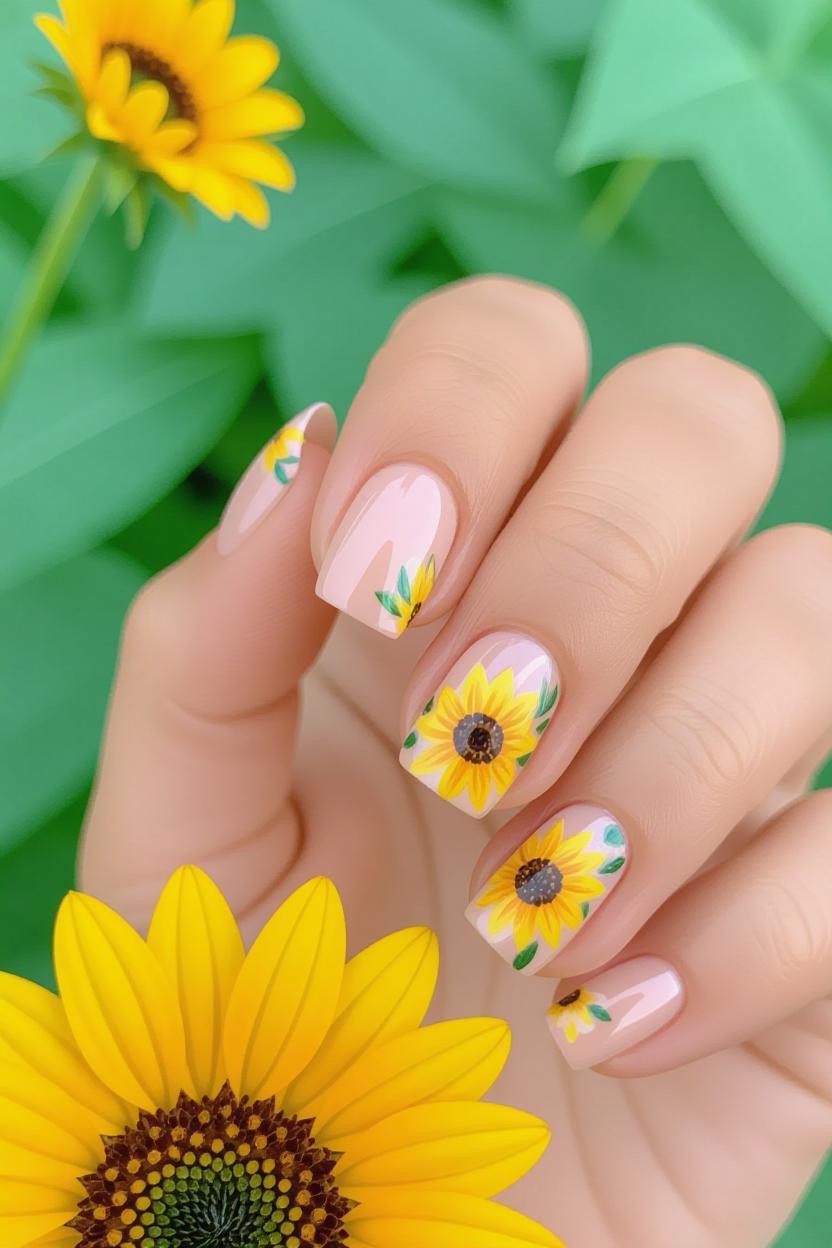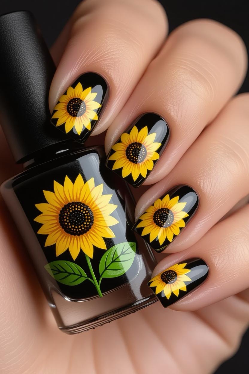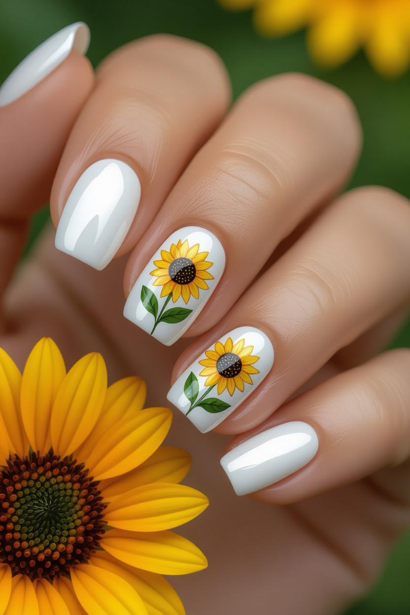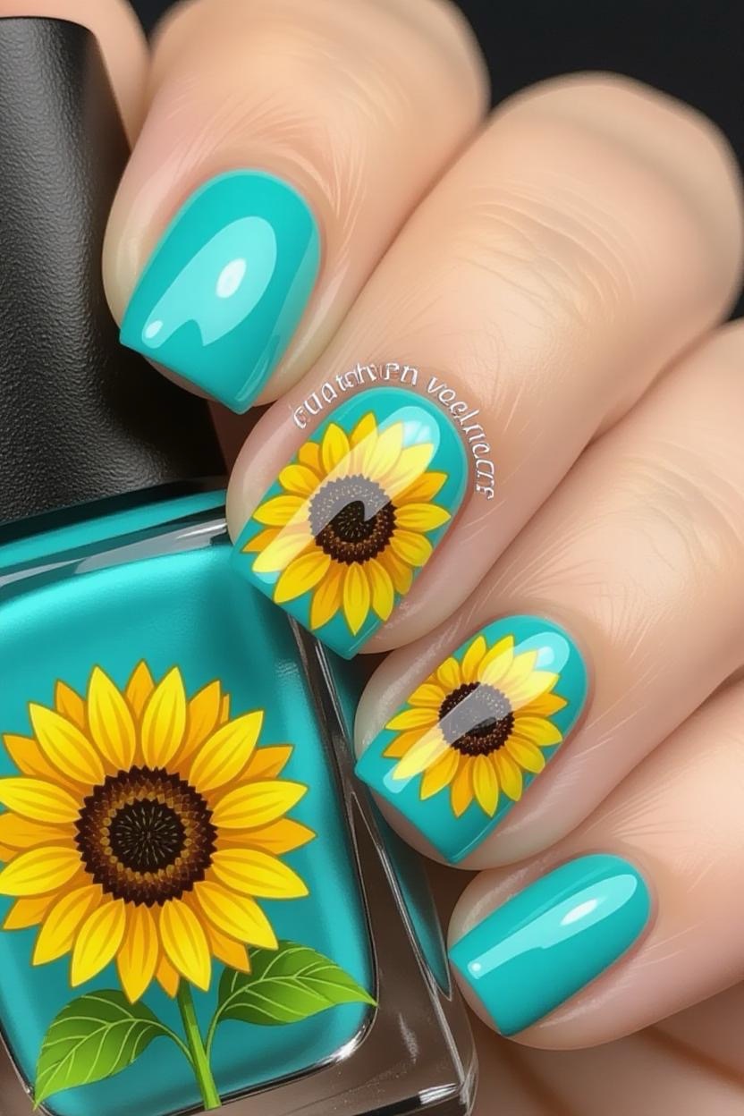 If you prefer minimalism, paint one accent nail with a sunflower while keeping the rest in a complementary solid color.
