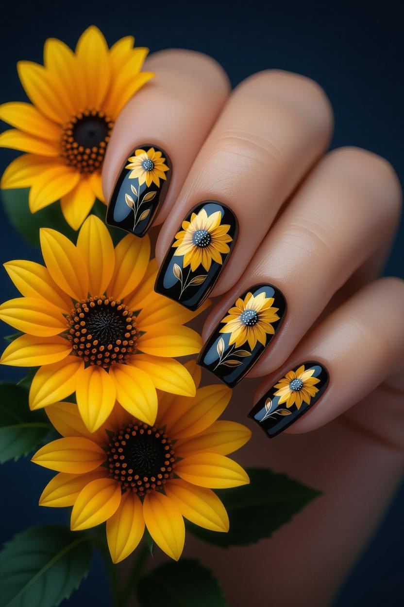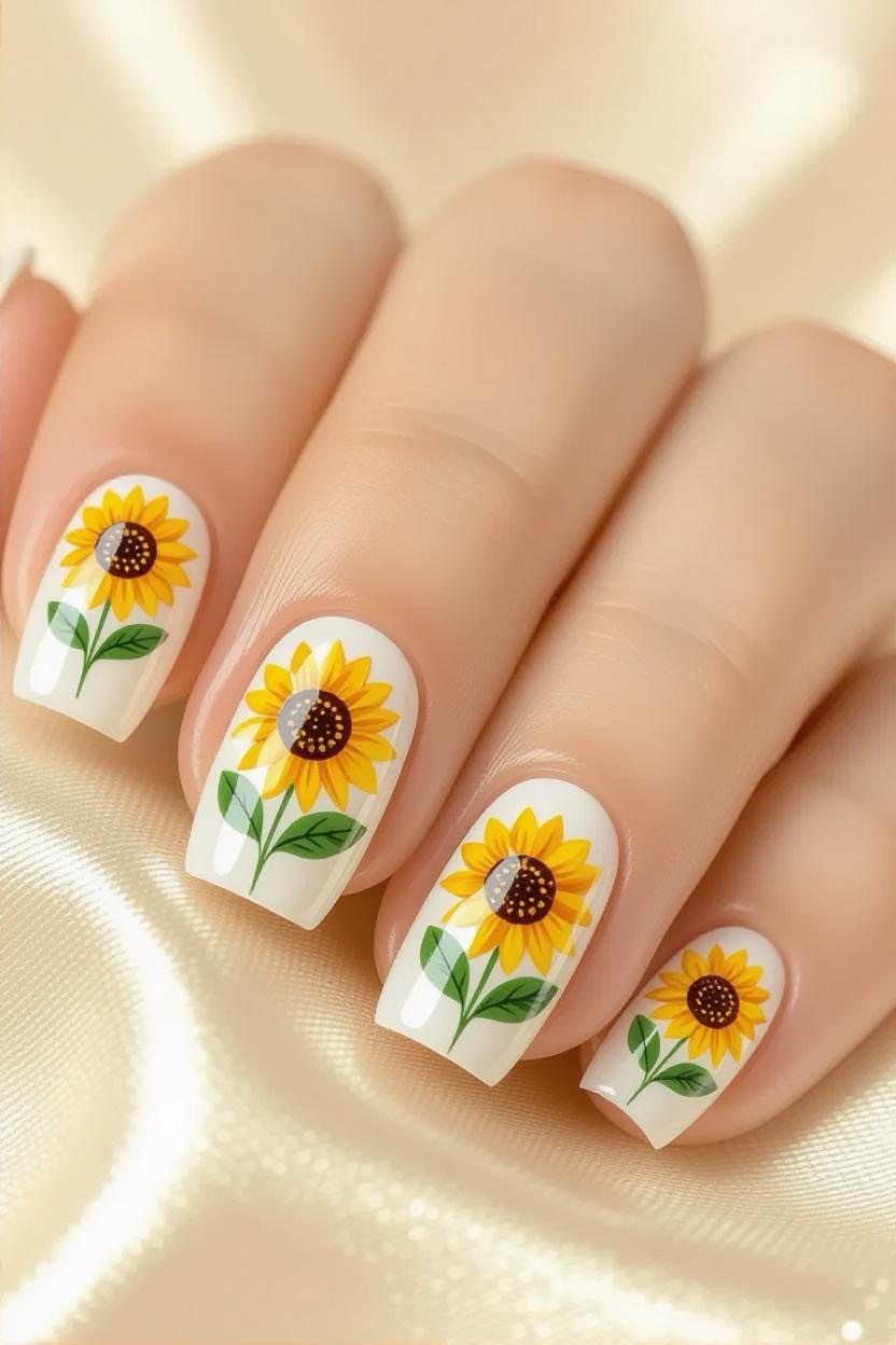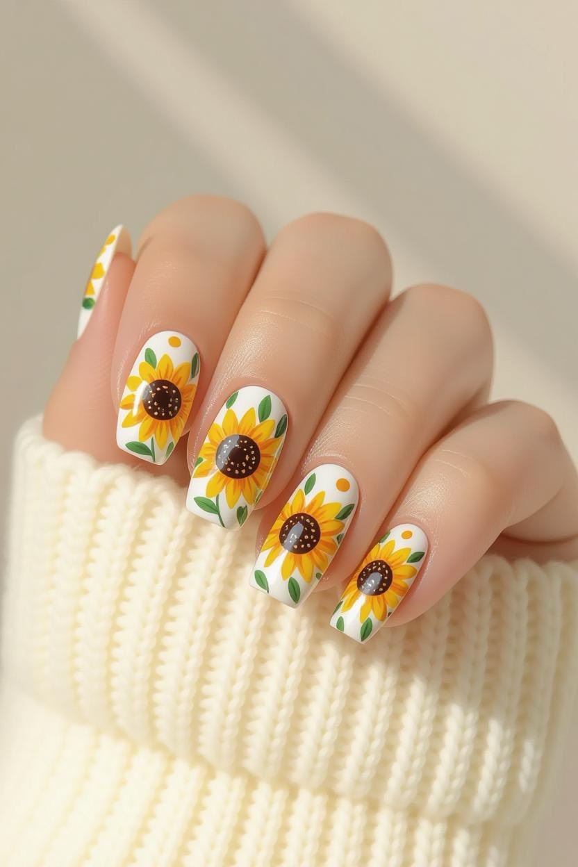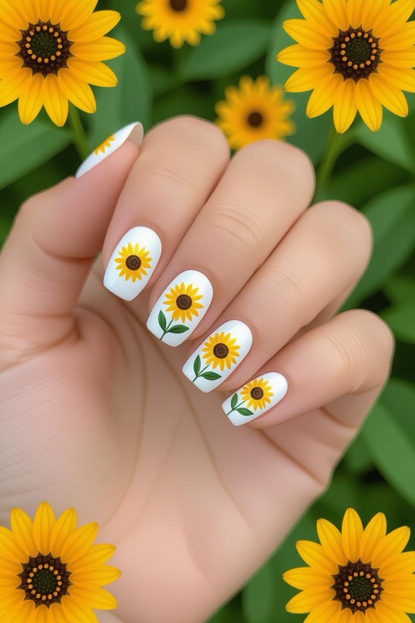 If you prefer minimalism, paint one accent nail with a sunflower while keeping the rest in a complementary solid color.