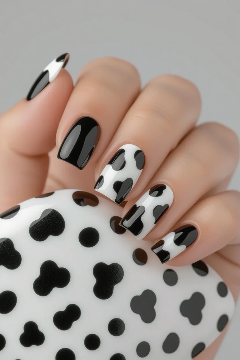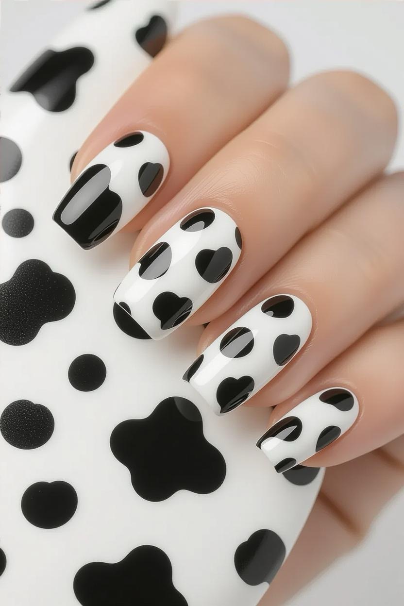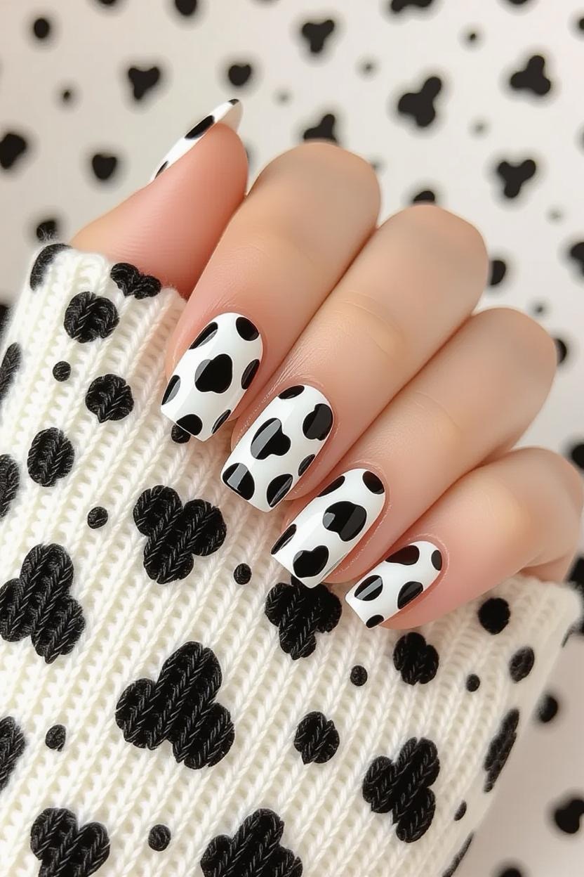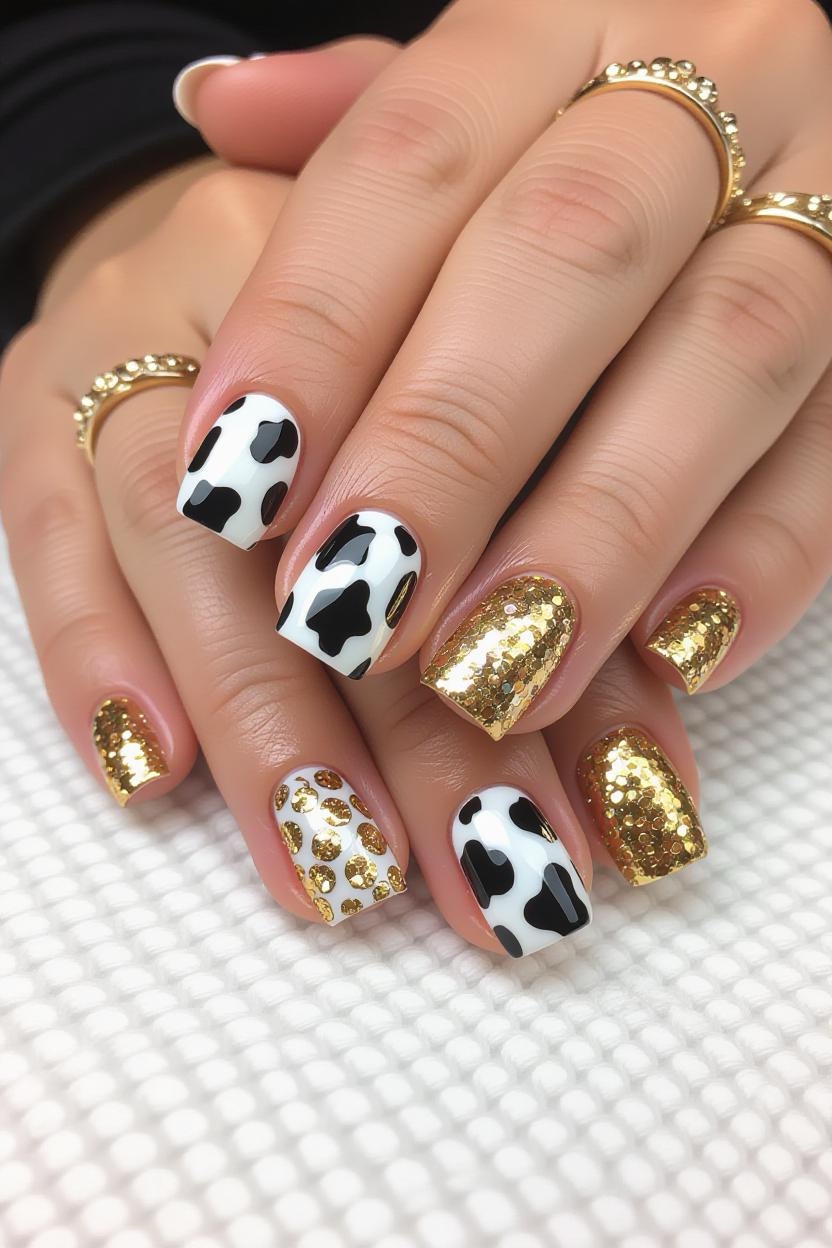 Nothing says cowgirl chic quite like cow print. Adding the iconic black-and-white spots to French tips gives a modern, playful twist. It’s versatile, matches almost any outfit, and instantly gives you that Western ranch vibe without going over the top.