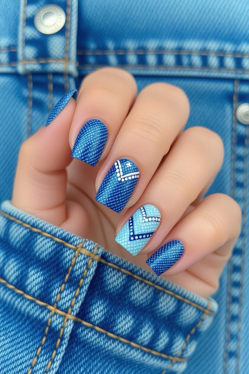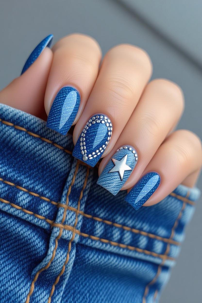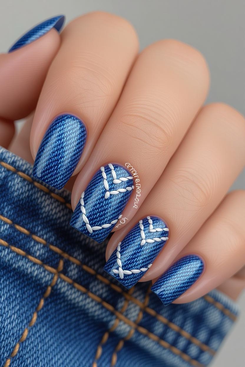 Bring your favorite pair of jeans to your manicure with denim-inspired designs. From faded indigo shades to stitched detailing, denim nails give off a rugged yet trendy feel perfect for casual wear or a country concert.