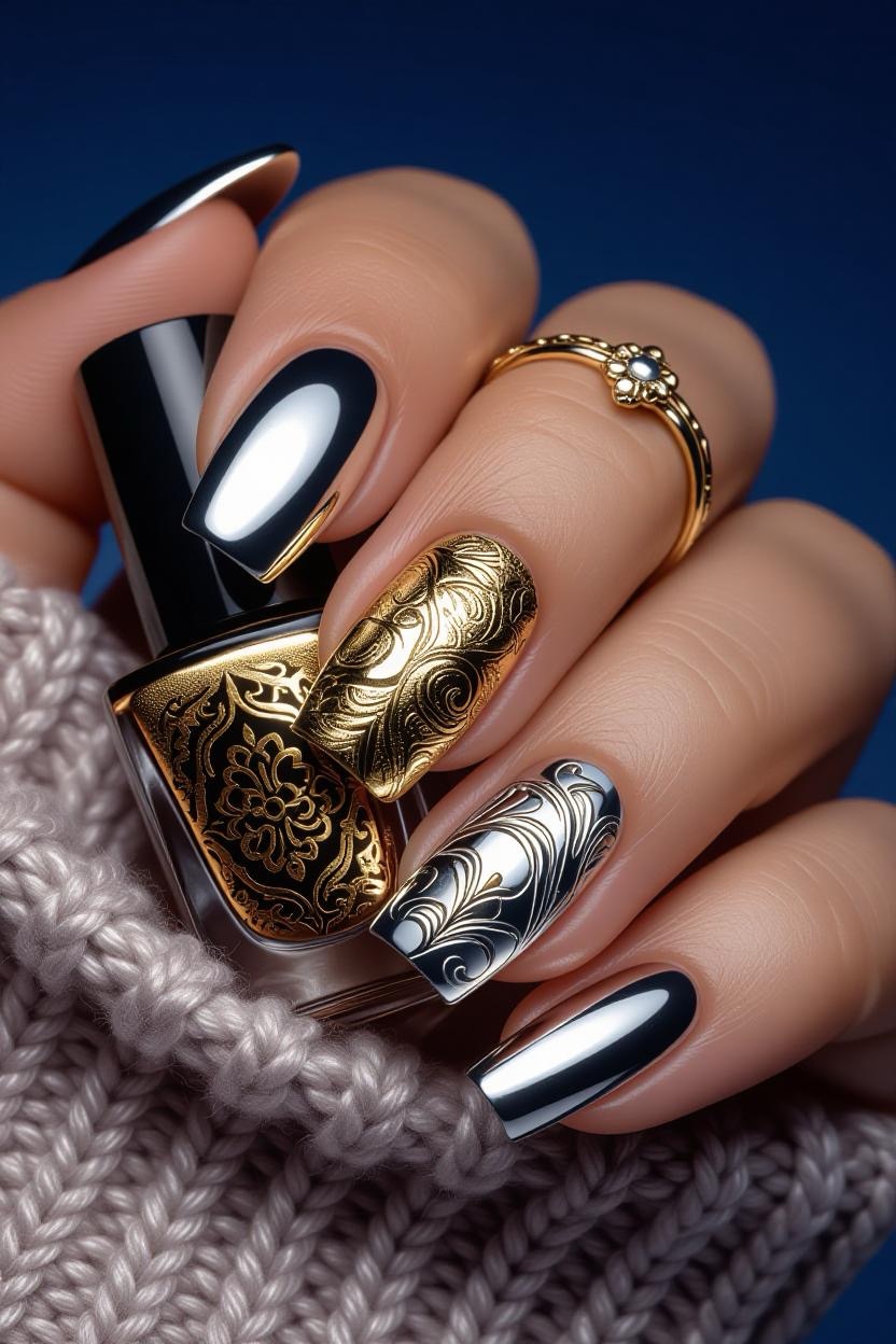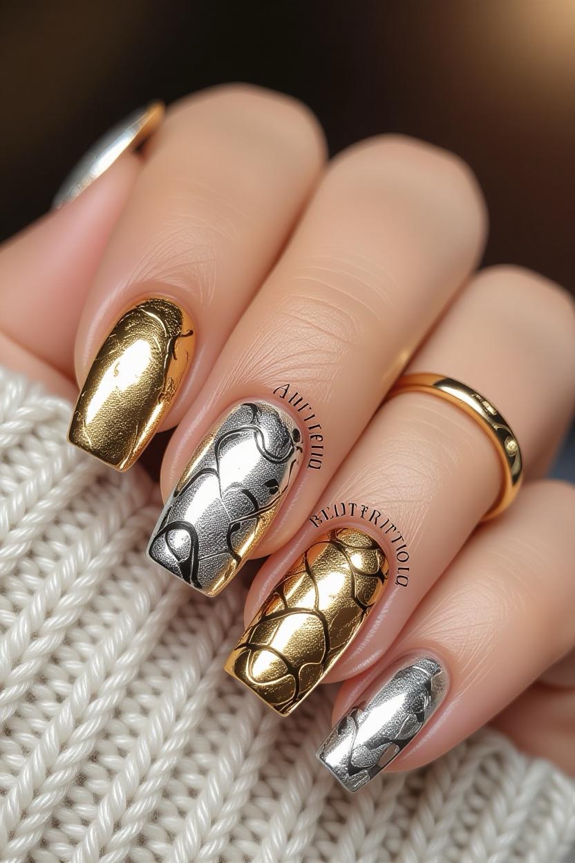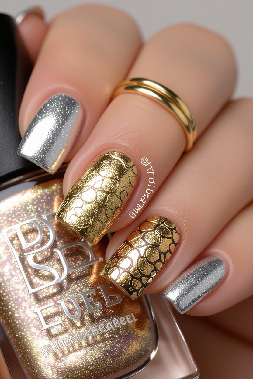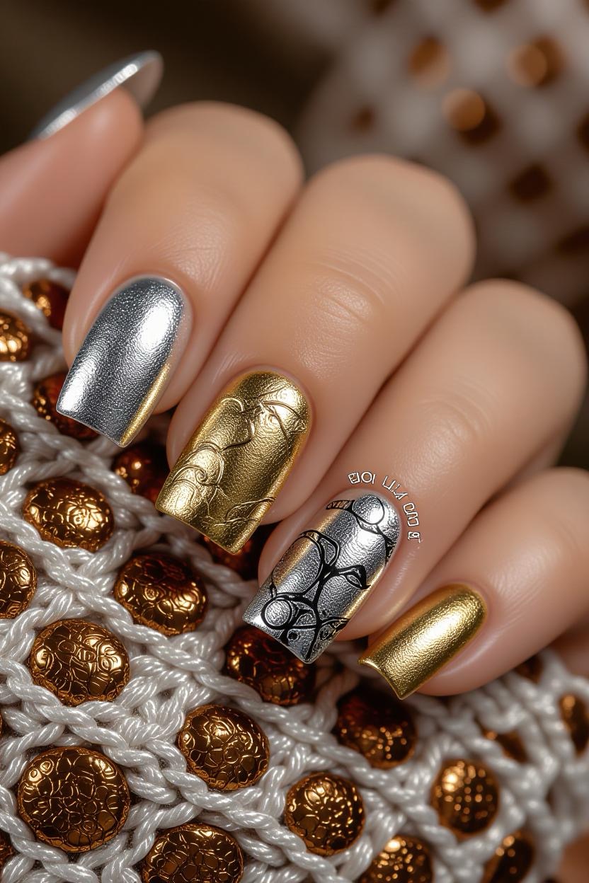 Add a glamorous edge to your cowgirl manicure with metallic accents. Think silver chrome tips, gold foil overlays, or bronze shimmer. It’s the perfect way to mix rustic Western charm with high-fashion glamour.