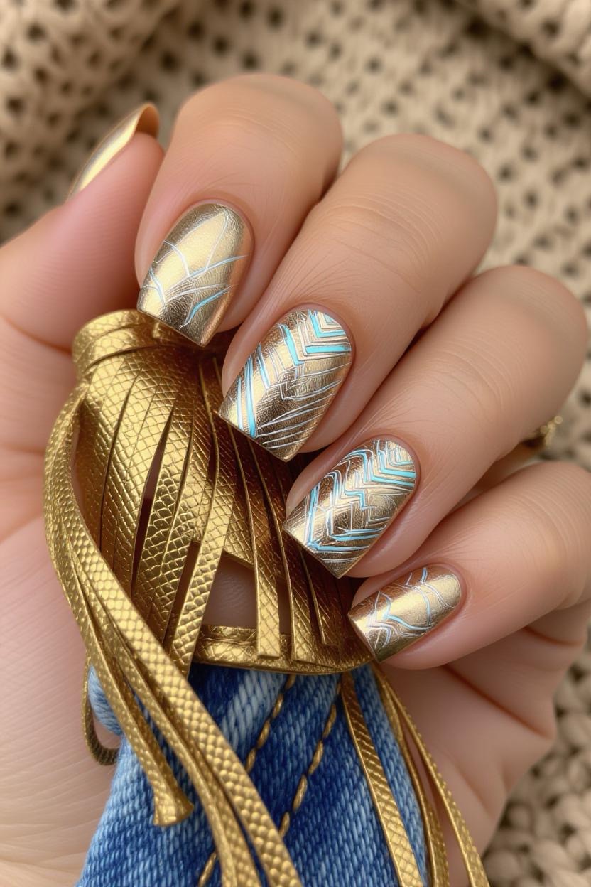 Fringe is a staple in Western fashion, and you can bring it to your nails with creative lines or textured designs that mimic the movement of fringe jackets. Metallic or neutral colors make the look extra stylish.