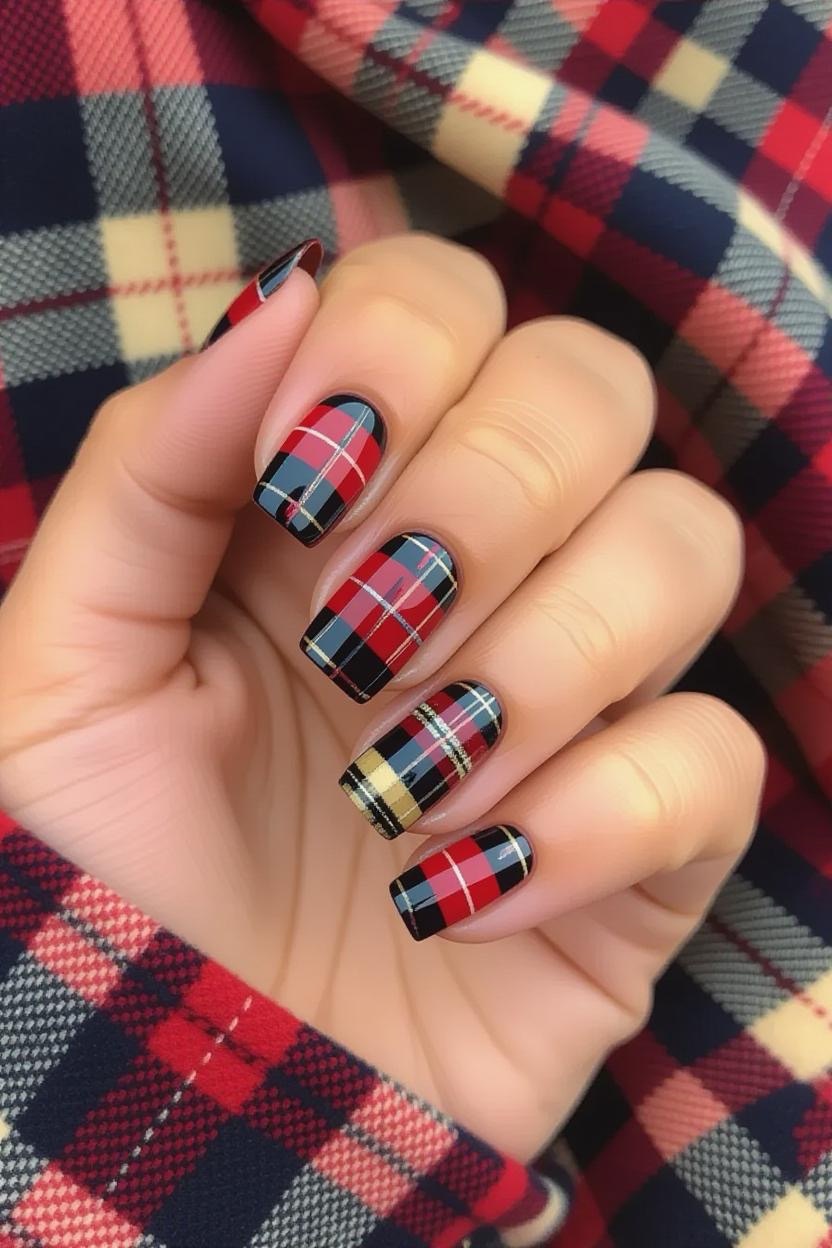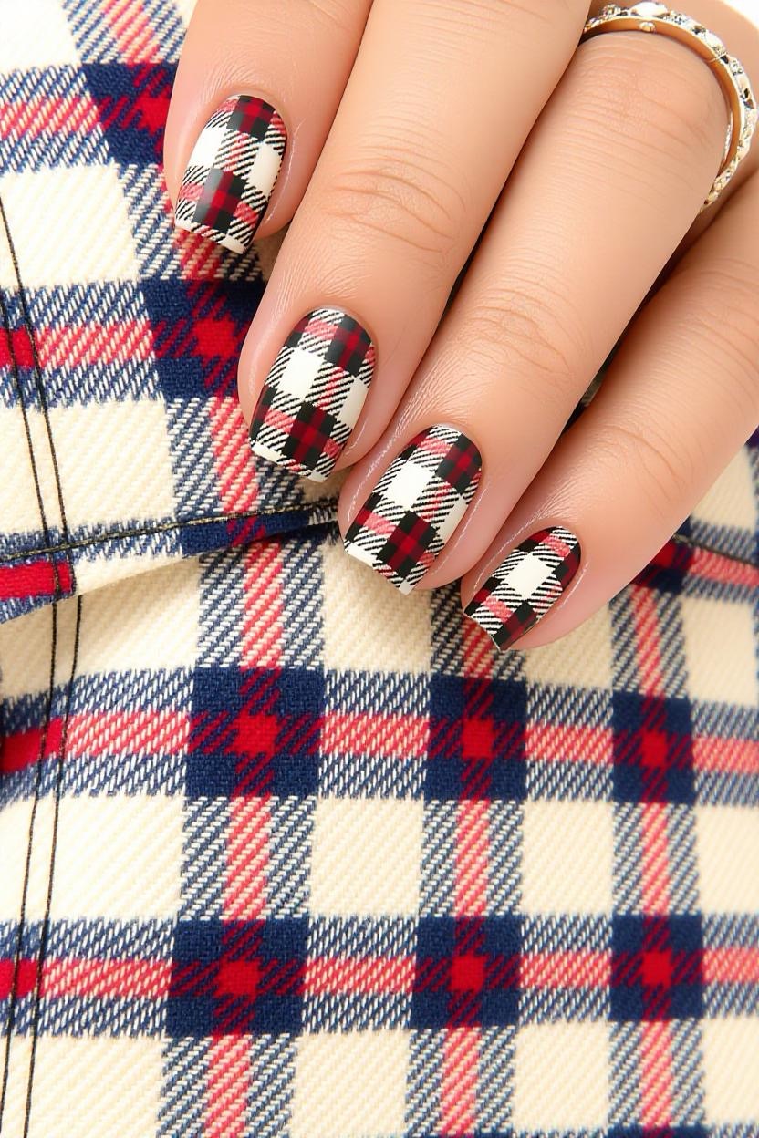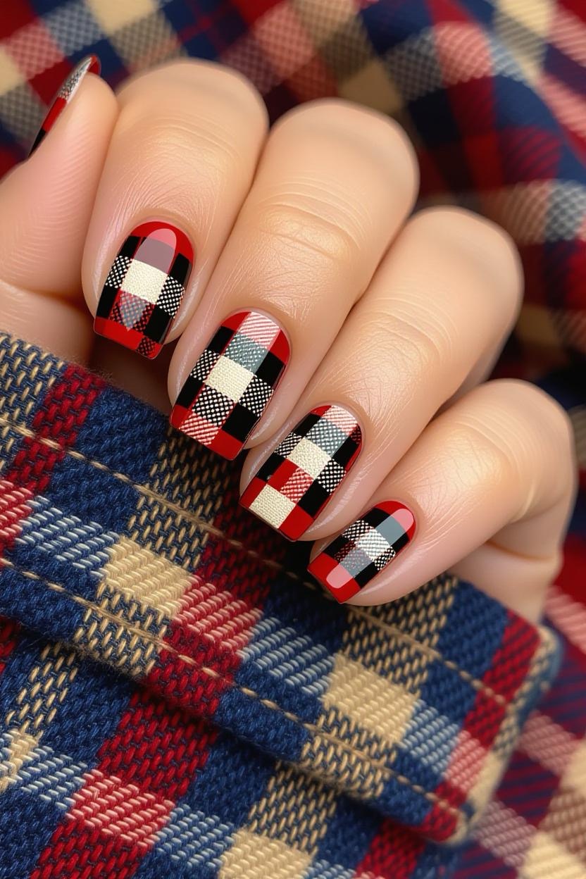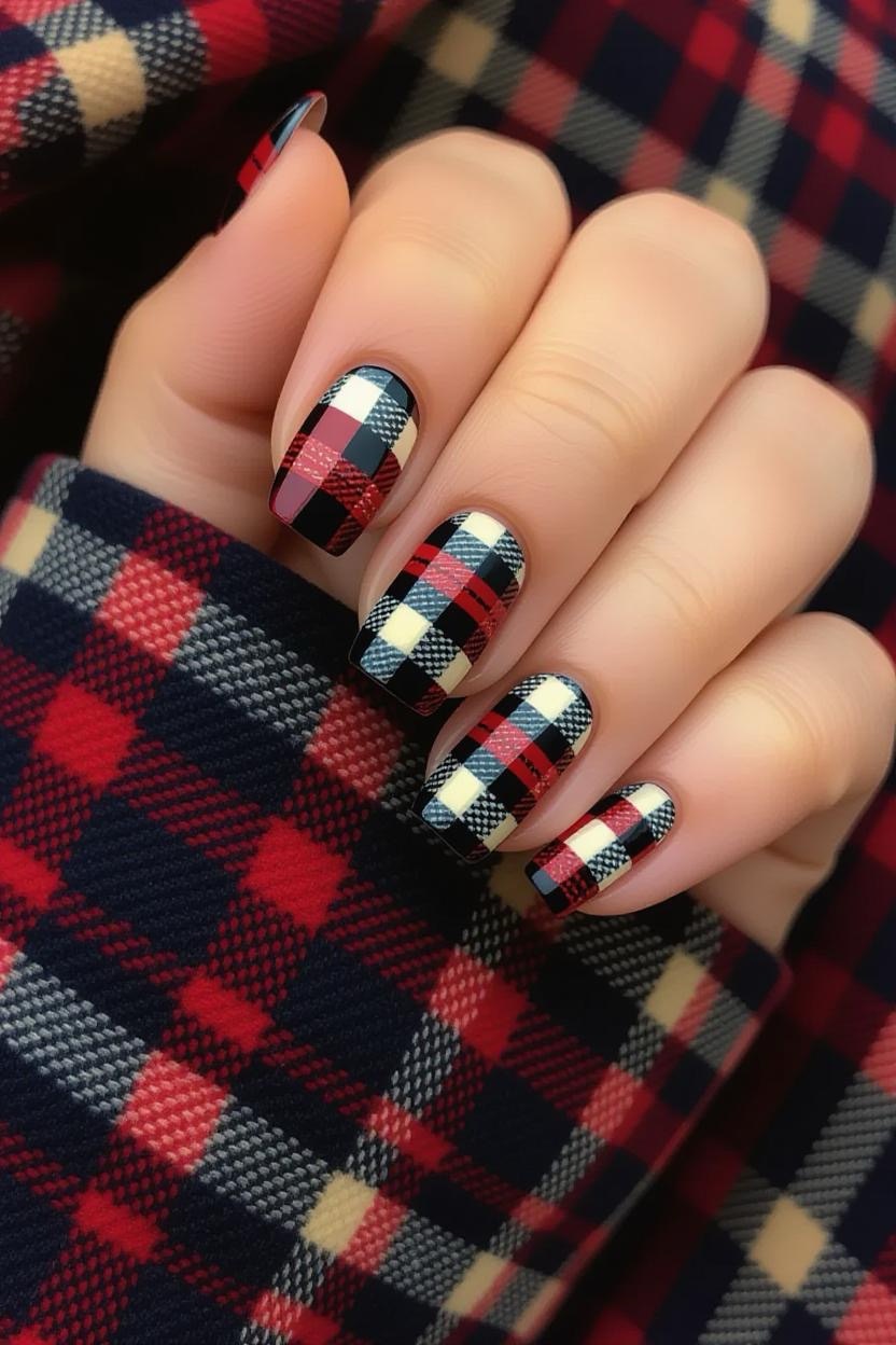 Channel the look of a classic flannel shirt with plaid nail art. Red, blue, and earthy color combinations make this design rustic yet trendy, perfect for casual everyday cowgirl vibes.