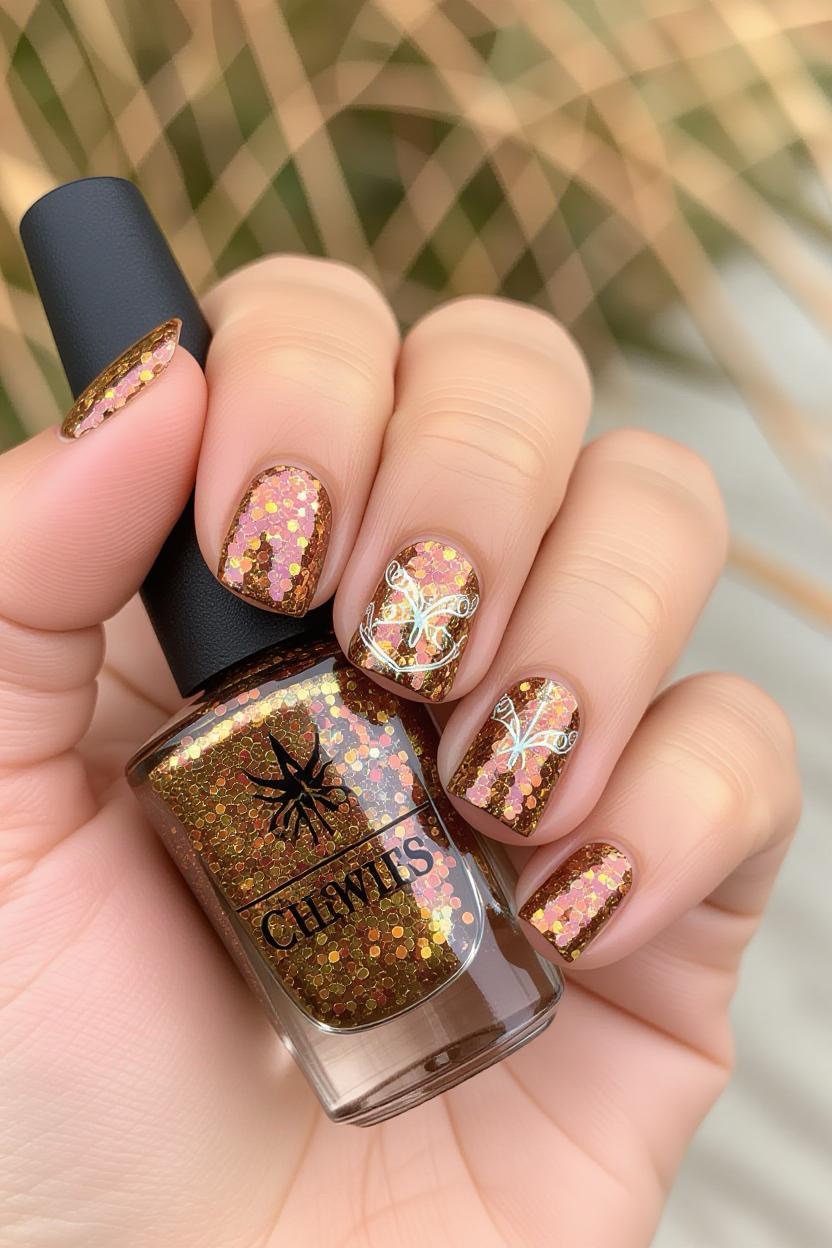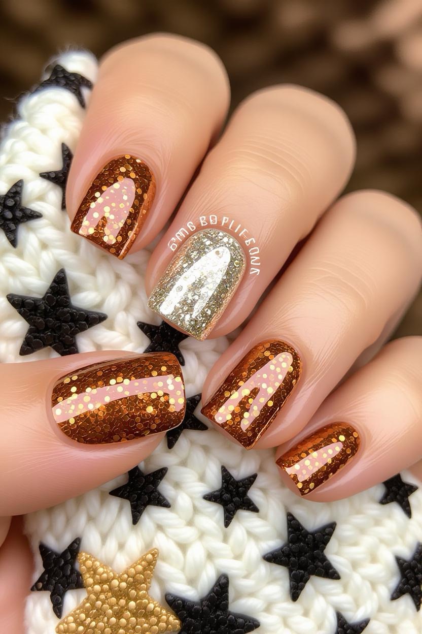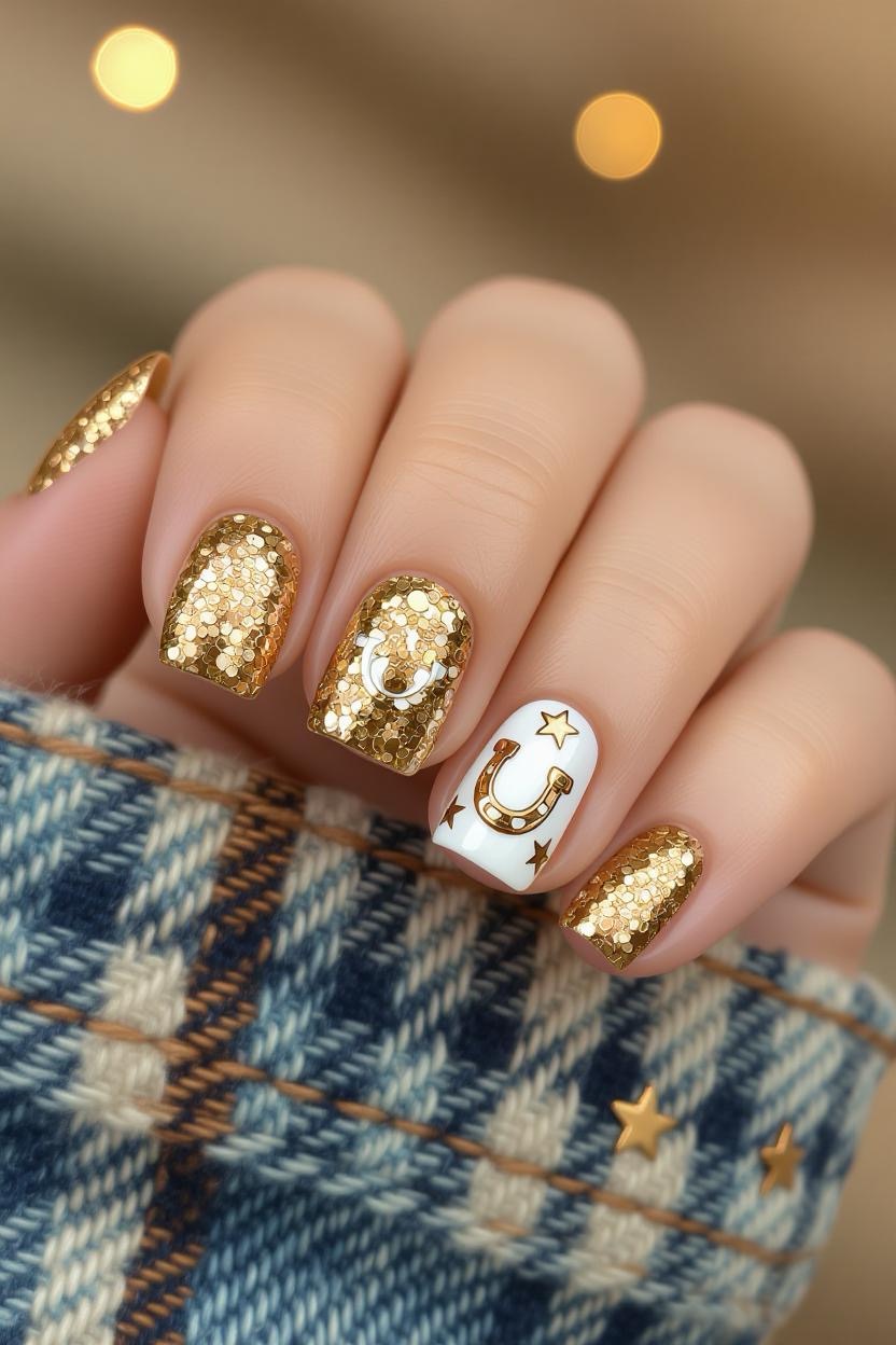 For those who want a mix of fun and glam, rodeo glitter nails are perfect. Use bold glitter accents in gold, copper, or bronze to highlight a rustic manicure while adding a playful sparkle.