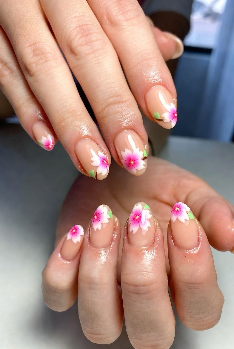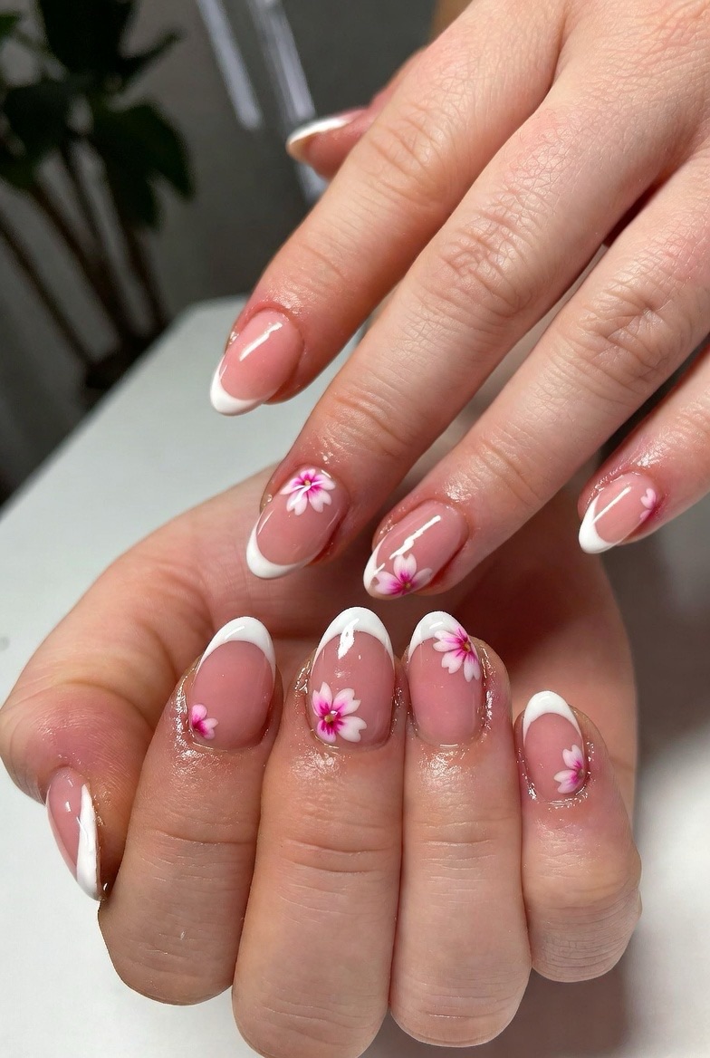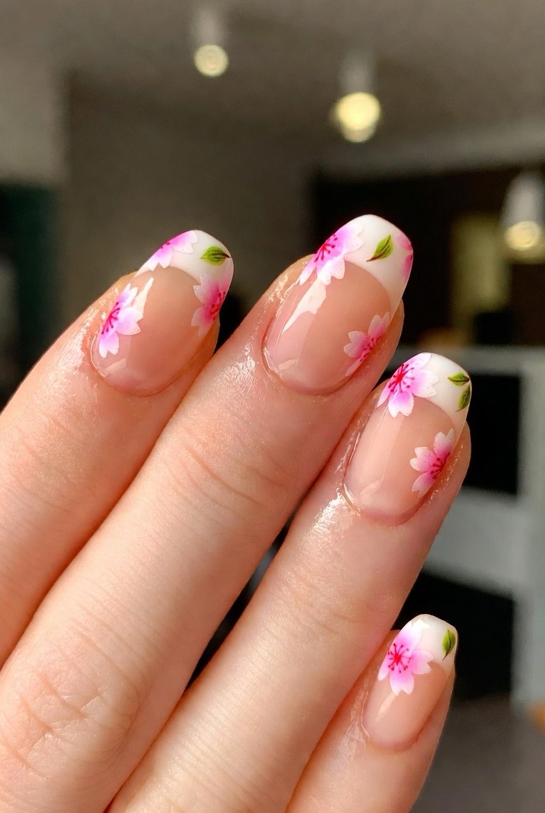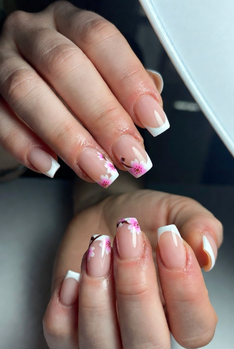 This twist on the French manicure features cherry blossoms blooming along the tips. It’s a subtle yet creative way to bring floral charm into a classic style, offering the perfect balance of traditional and trendy.