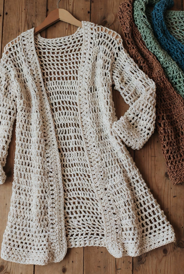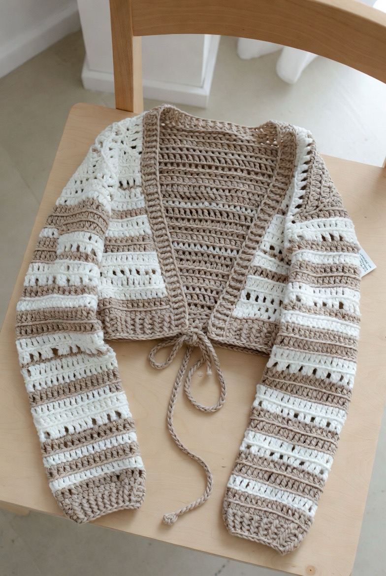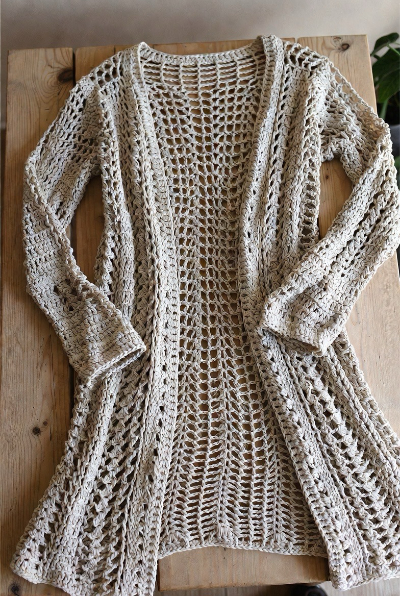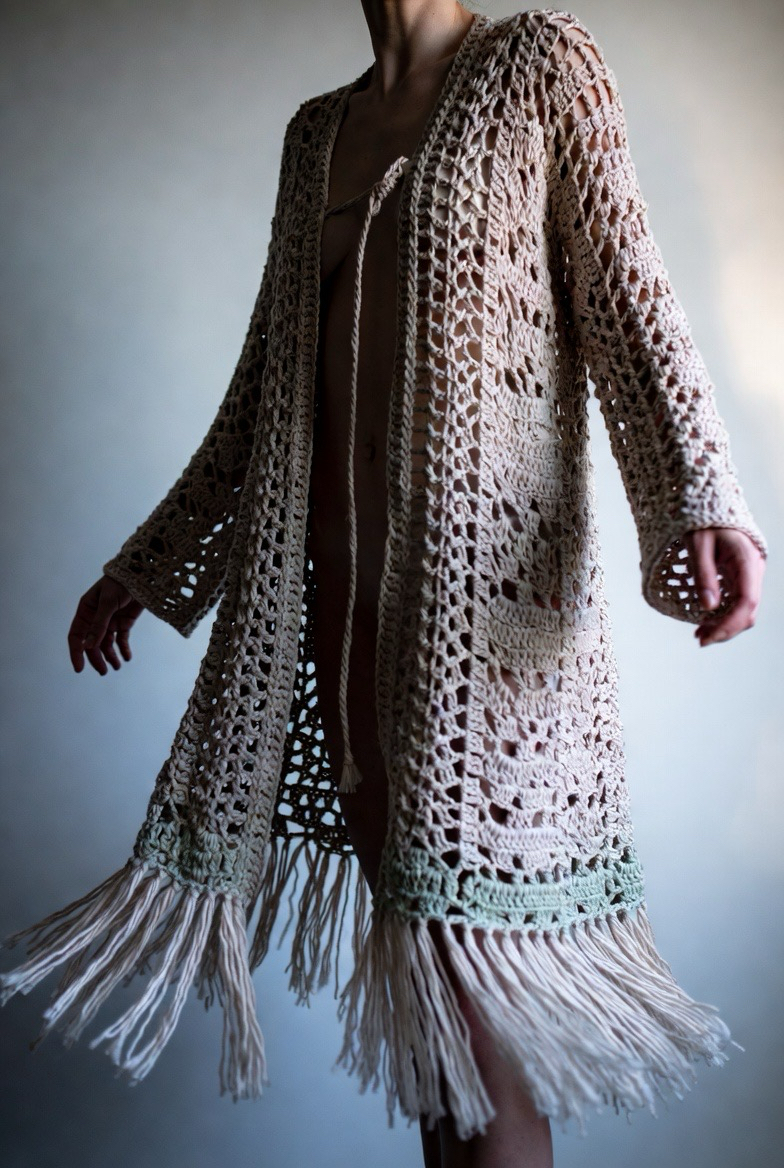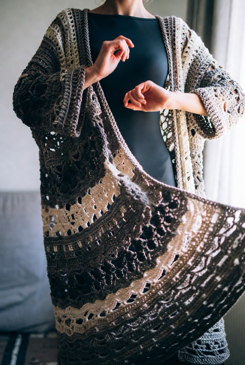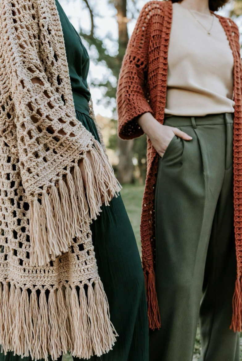 Add fringe and open stitches for a free-spirited look. This cardigan feels relaxed, artistic, and stylish.
