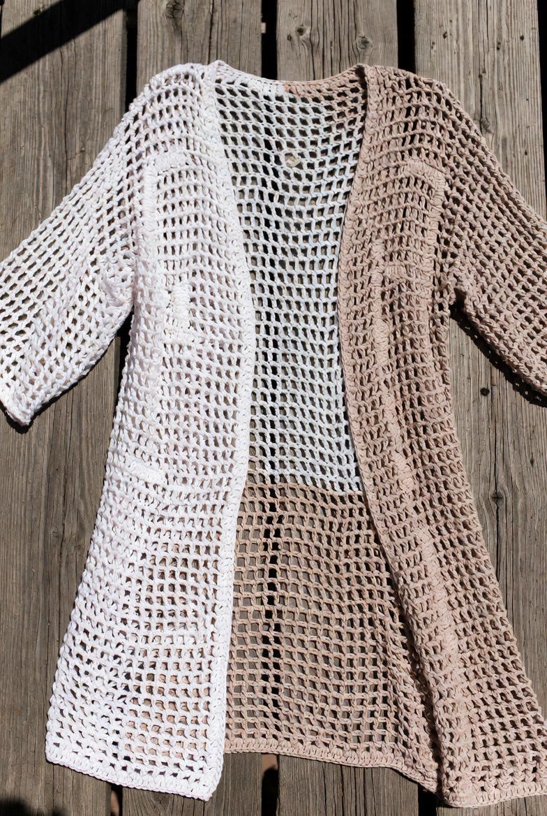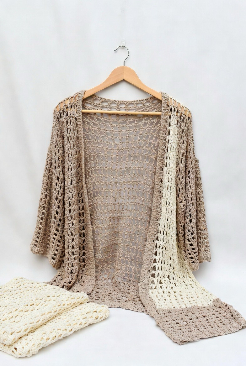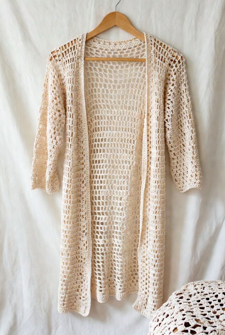 This airy design is perfect for spring and summer. Delicate stitches add elegance without warmth overload. Great over tank tops and dresses.