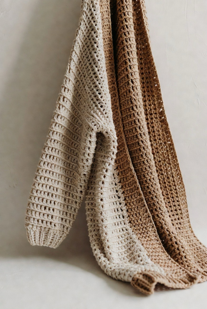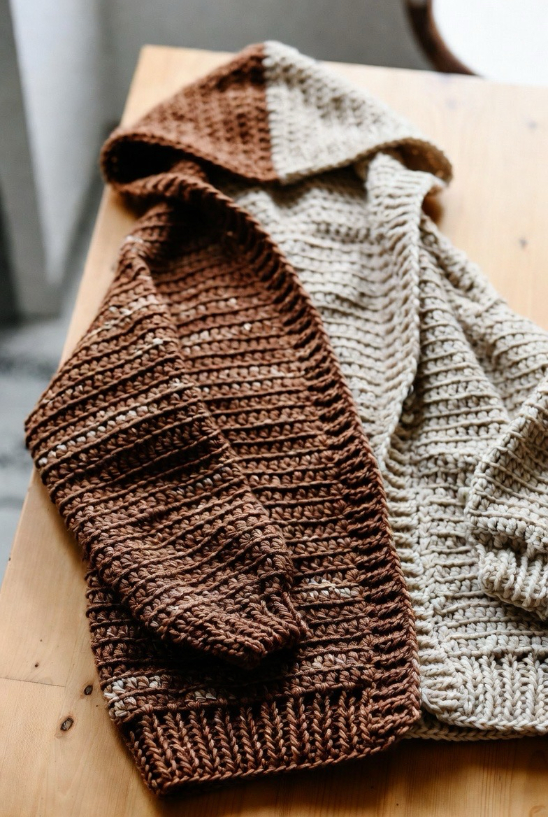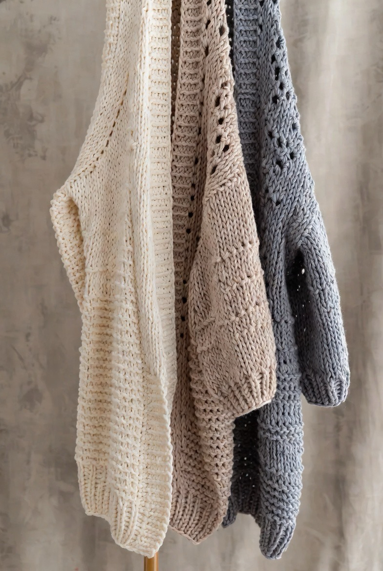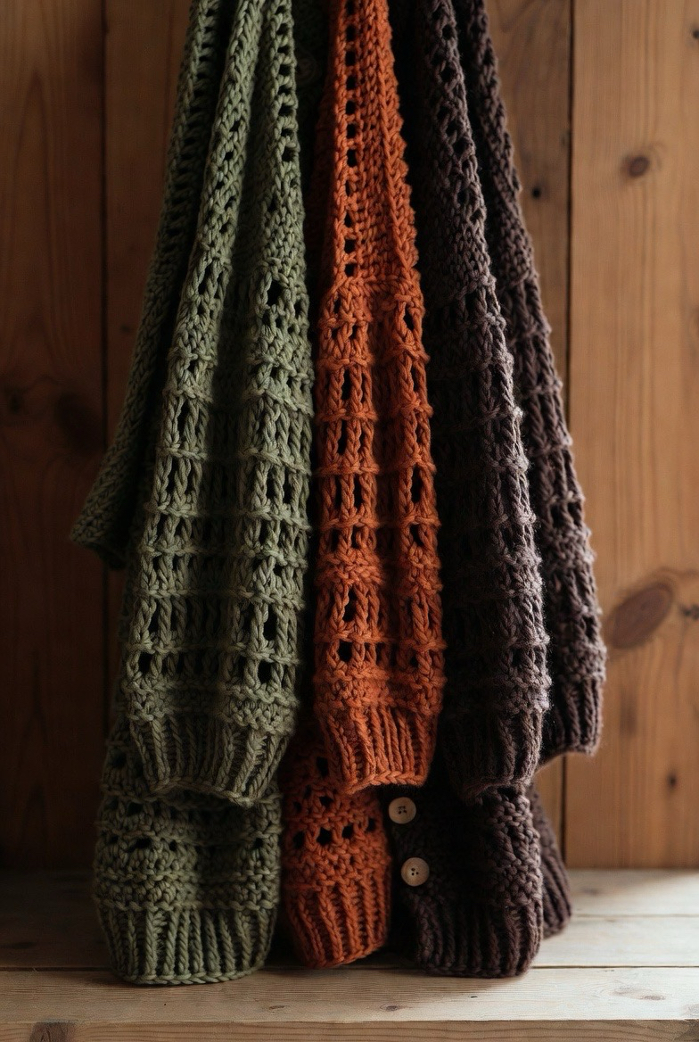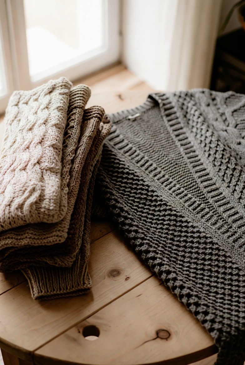 Cable, waffle, or ripple stitches add visual depth and warmth.