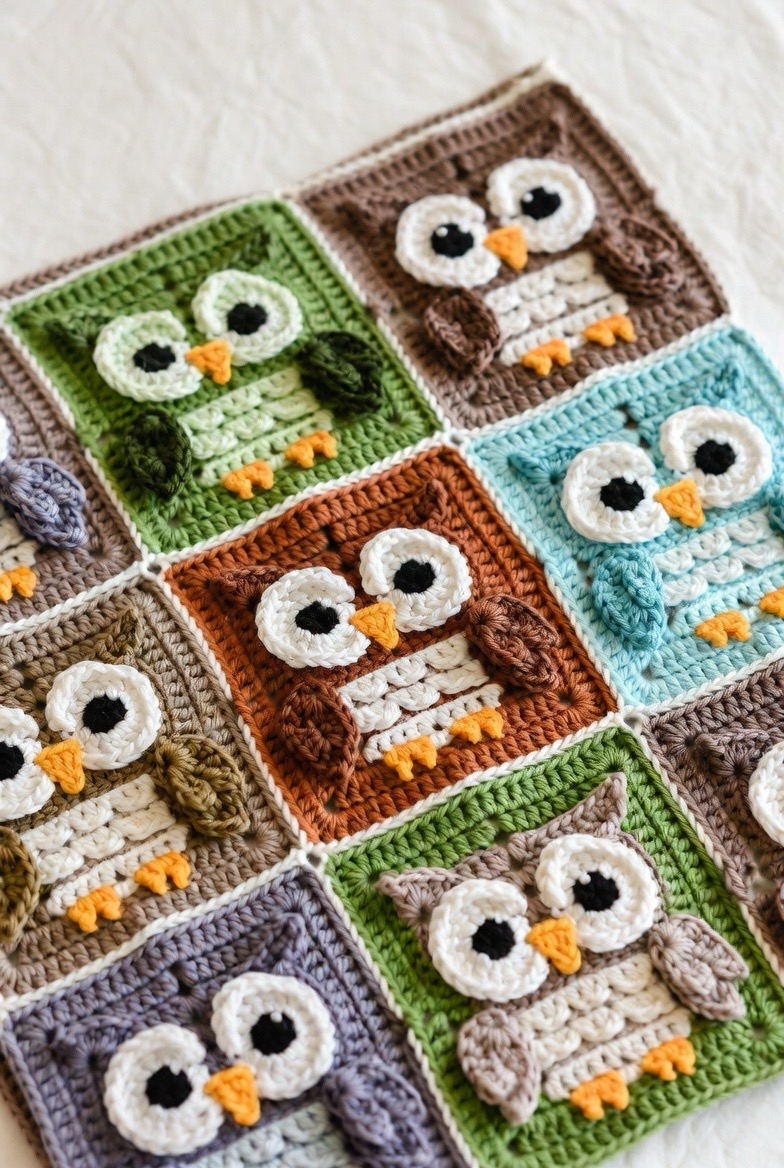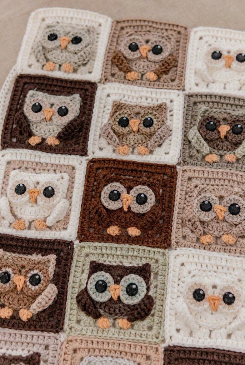 Owl squares are full of charm and personality. The big eyes and round shape make them fun and friendly. They work great in woodland or forest-themed blankets. The layered stitches create texture that looks beautiful and feels soft. An owl square adds a little magic and wisdom to the blanket, making it feel storybook-inspired and cozy.