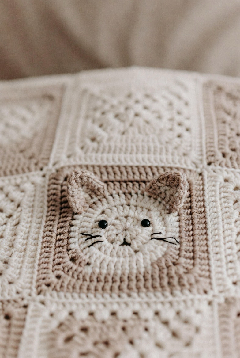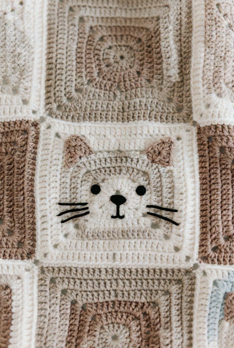A cat square brings a cozy, homey feel to a baby blanket. With pointy ears and a sweet little face, it feels playful and comforting. This design works beautifully in soft neutrals or warm tones. It adds personality without being too busy. The cat square makes the blanket feel warm and familiar, like a gentle companion watching over baby.