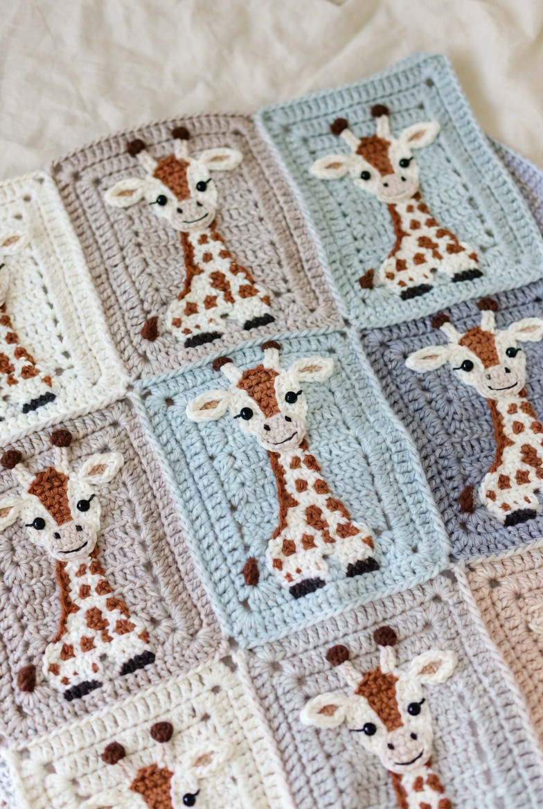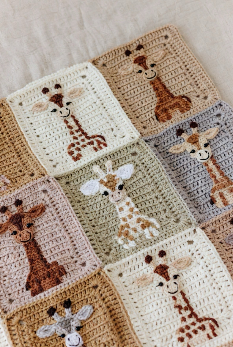 Giraffe squares are tall, gentle, and playful. The spots add fun texture, and the long neck gives character. This square works beautifully in safari-themed blankets. It adds a sense of adventure and curiosity while staying sweet and baby-friendly. It makes the blanket feel creative and joyful.