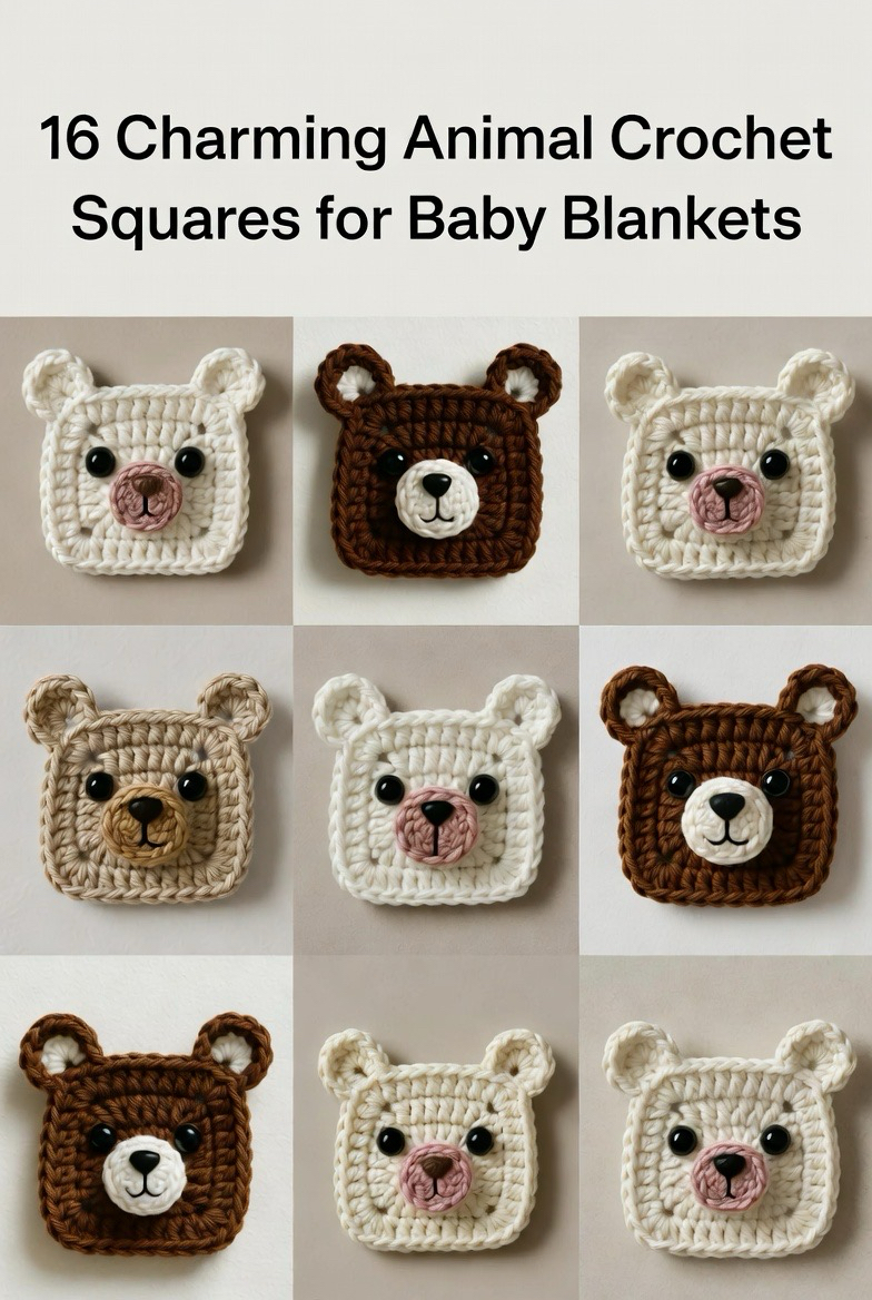 Animal crochet squares are a beautiful way to turn a simple baby blanket into something truly special. Each square becomes its own little story, full of character, warmth, and handmade love. These designs are perfect for nurseries, baby showers, and heartfelt gifts that parents will treasure for years. From sweet bears and bunnies to playful lions and owls, animal squares add personality and comfort to every stitch. Below are 16 charming animal crochet square ideas that bring cozy cuteness and creative joy into baby blankets 🐻🧶