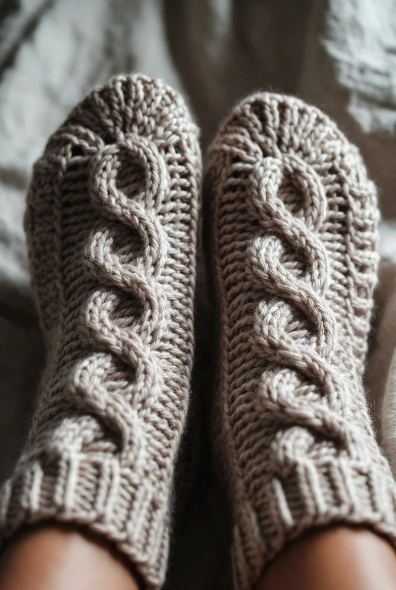 Cable-textured socks bring a classic, elegant look to crochet. The twisted stitch pattern adds depth and structure, making the socks feel rich and detailed. This style looks beautiful in solid colors that show off the texture. Cable crochet socks feel thick and warm, perfect for winter days. They add a touch of handmade luxury to your outfit. If you love detailed crochet projects, cable socks are a satisfying and stylish choice.