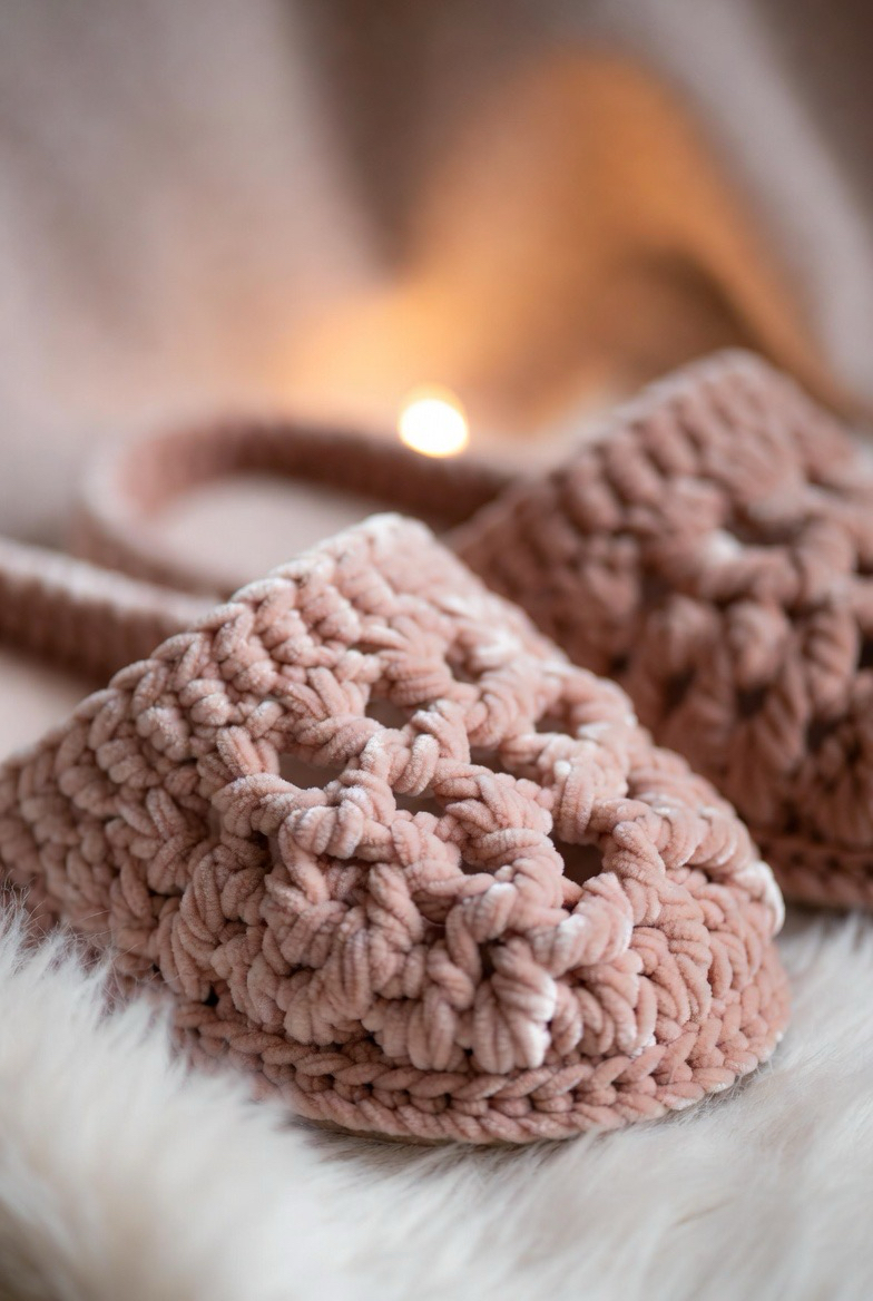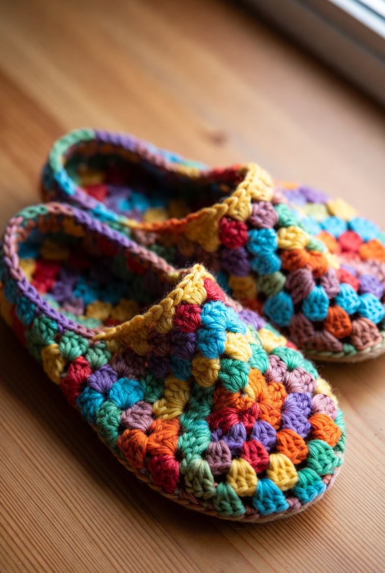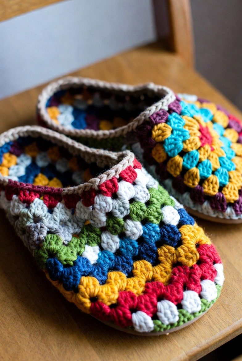 Granny stitch slippers bring color and charm. The classic cluster stitches create a playful, vintage feel. You can use scraps of yarn to make fun color combos. Granny slippers feel cheerful and creative. They are perfect for people who love handmade style with personality. These slippers add joy to your daily routine.