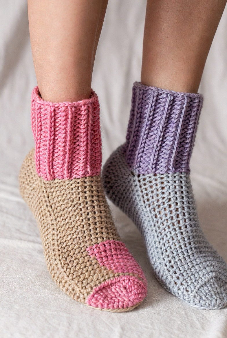 5.) Two-Tone Crochet Socks