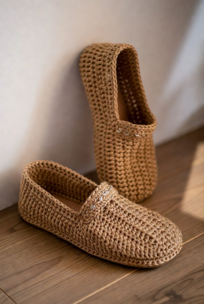 Slippers made with fuzzy or velvet yarn feel incredibly soft. The plush texture makes every step feel cozy. These slippers are perfect for cold floors and quiet mornings. Fuzzy yarn adds a luxurious look and feel. Choose warm shades like cream, blush, or mocha for extra comfort vibes. These slippers are not only warm but also stylish enough to wear all day at home. They feel like a hug for your feet.