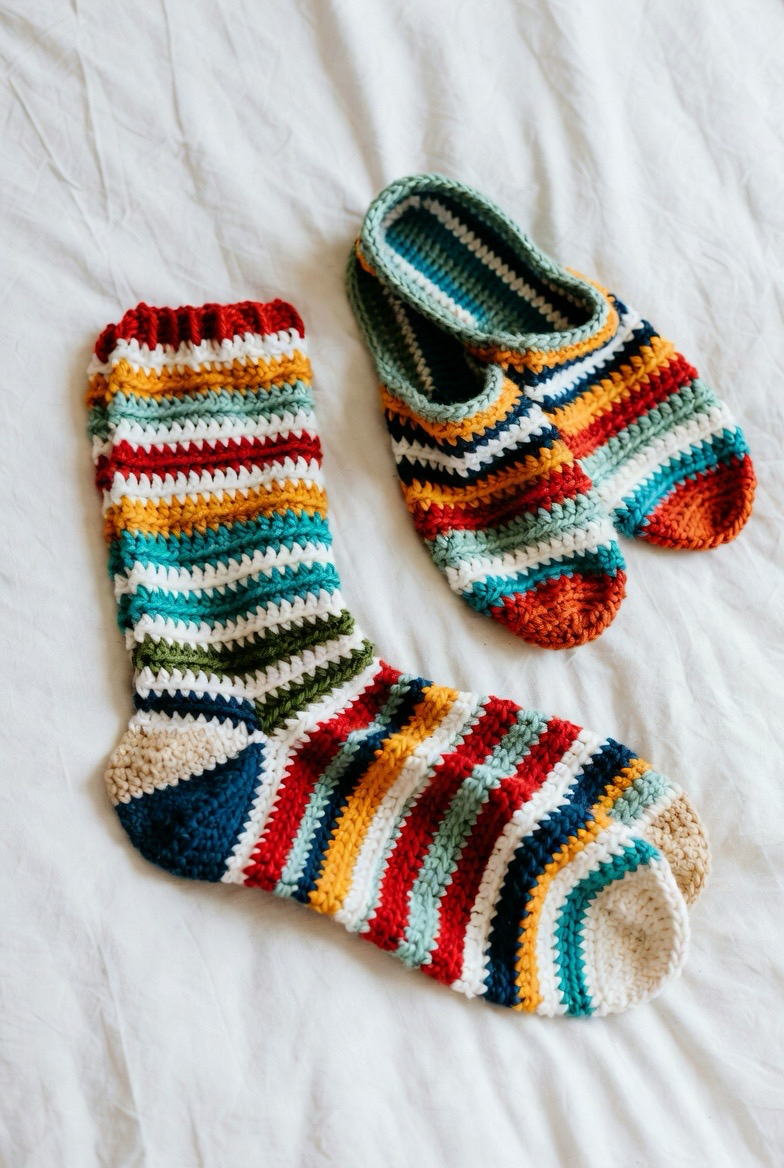 Striped socks add color and movement. You can choose thin stripes for subtle detail or bold stripes for fun style. Striped crochet socks feel cheerful and creative. They are perfect for using leftover yarn. This style makes your socks stand out while still being cozy.