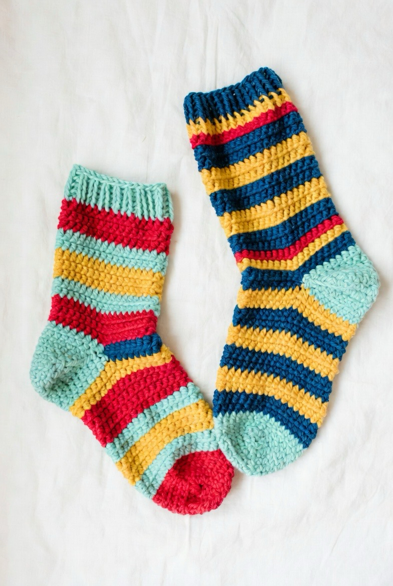 14.) Striped Crochet Socks
