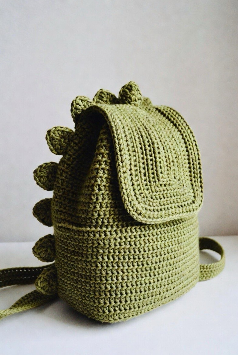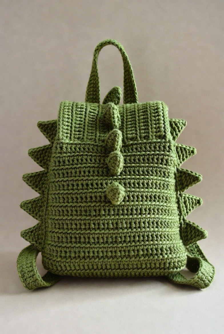 If your child loves prehistoric adventures, this dinosaur-inspired backpack is a must-try. Featuring cute crochet spikes along the back, it offers the perfect mix of fun and practicality. The bag itself is easy to assemble, with simple shaping and a roomy interior for small books or toys. Choose earthy greens or bold brights to match your child’s personality. This playful design transforms everyday errands into exciting explorations, making it an instant favorite among young dino fans.