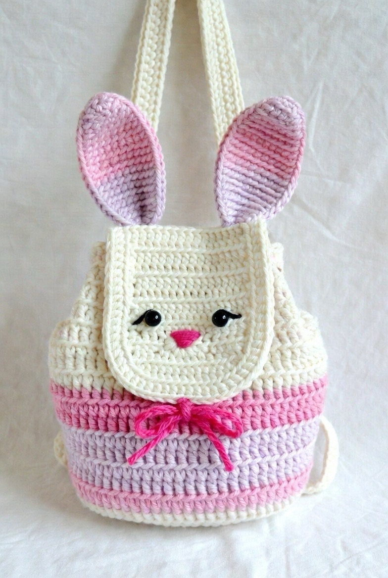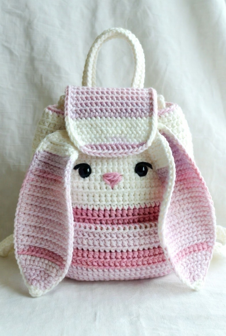 This charming bunny-themed backpack brings adorable personality to a functional design. The long floppy ears, soft pastel colors, and embroidered face create a heartwarming accessory kids love carrying around. It’s beginner-friendly, relying on simple stitches and basic shaping that works up quickly. The backpack is perfect for Easter, springtime outings, or everyday use. Kids adore the cuddly look, while parents appreciate the sturdy build and roomy interior. It’s a sweet handmade gift bursting with character.