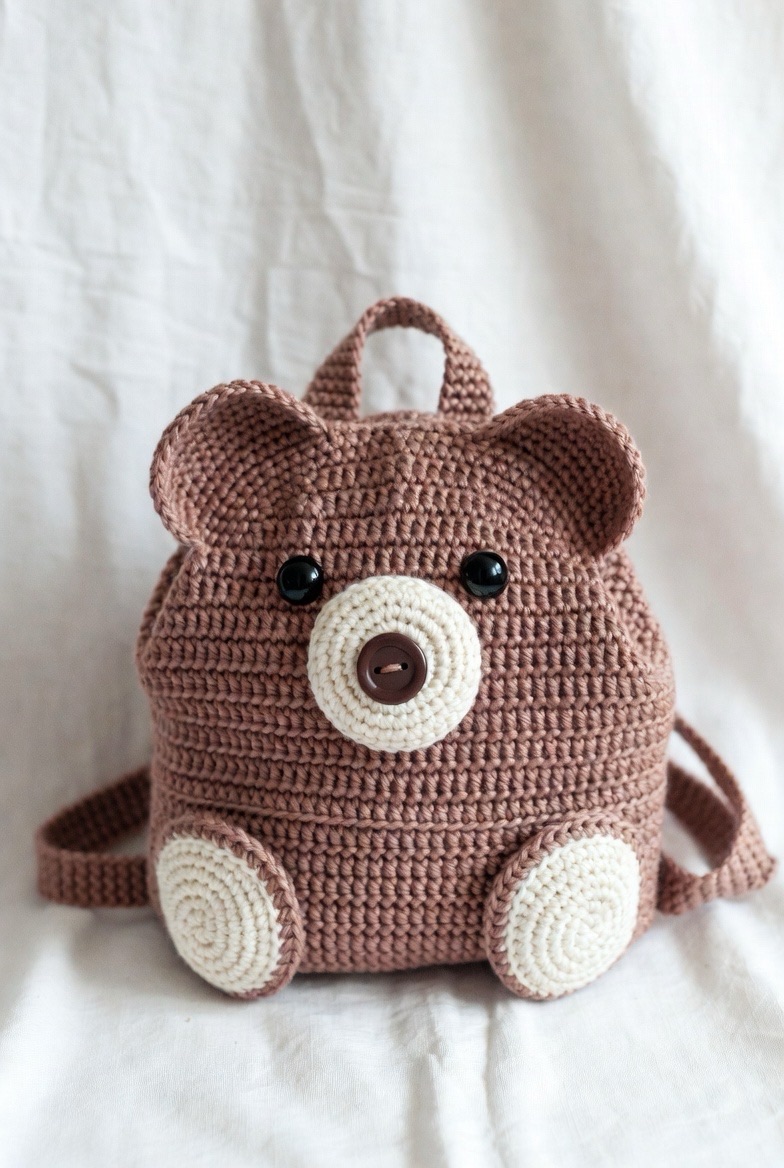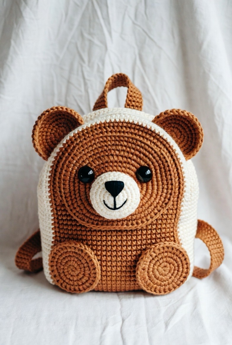 This adorable bear-shaped backpack combines charm with softness for a child-friendly accessory that works for everyday use. The round face, button nose, and simple ears give it a friendly expression kids adore. The straps are easy to adjust, and the interior provides enough space for small essentials. This pattern uses simple stitches, making it accessible for newer crocheters. Choose brown, cream, or even pastel colors to give your bear a fun twist. It’s a versatile handmade gift idea.
