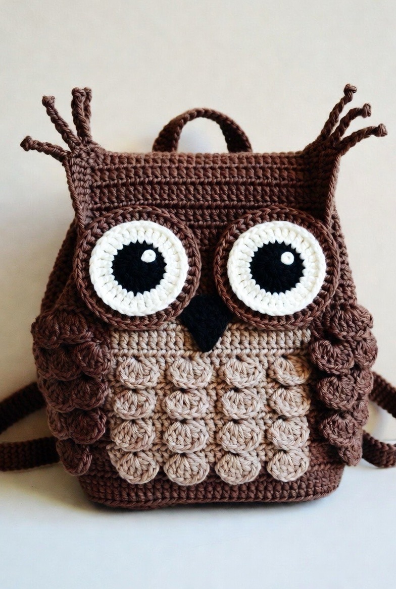 Kids love quirky, eye-catching designs, and this owl-themed crochet backpack delivers plenty of charm. Large crocheted eyes, feather-inspired stitching, and pointed ear tufts create a whimsical woodland look. The bag is spacious enough for small books or art supplies, making it both cute and functional. The pattern is beginner-friendly and works well with different yarn colors to create unique personalities for each owl. It’s a delightful accessory for little nature lovers and imaginative kids.