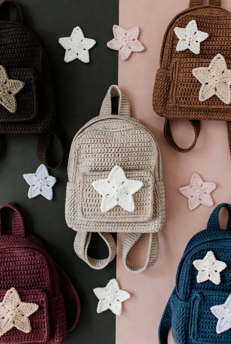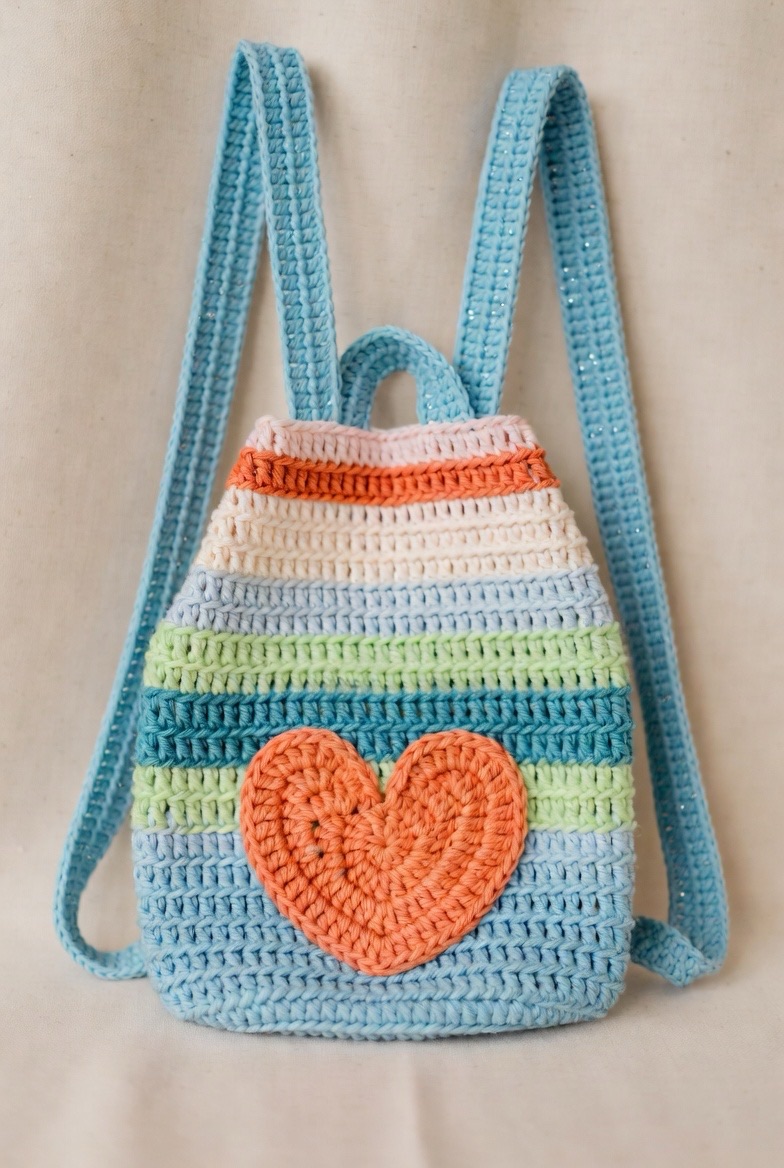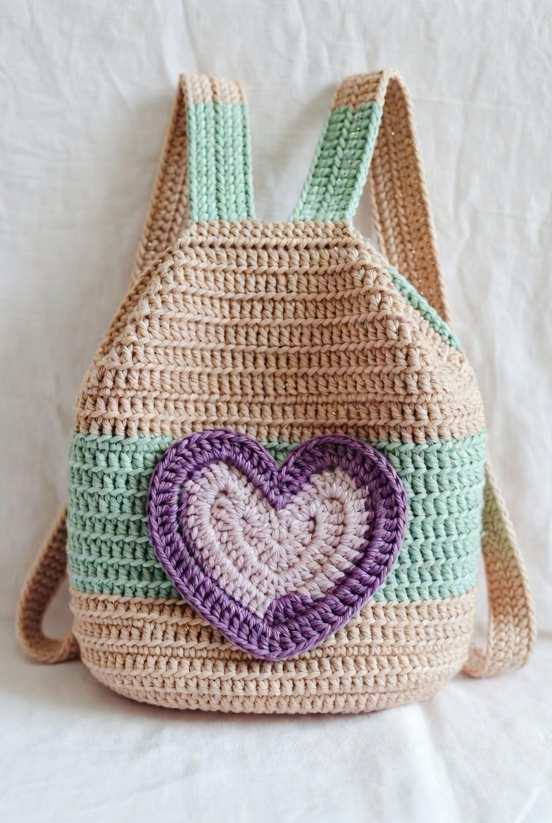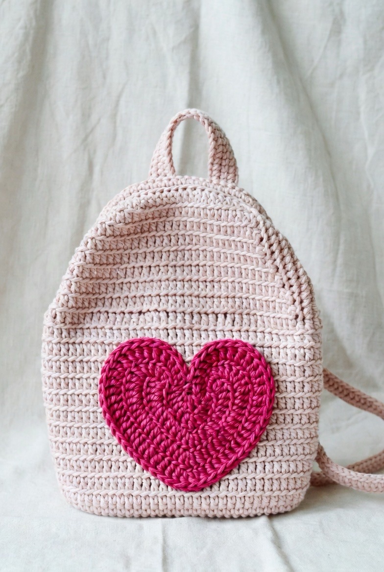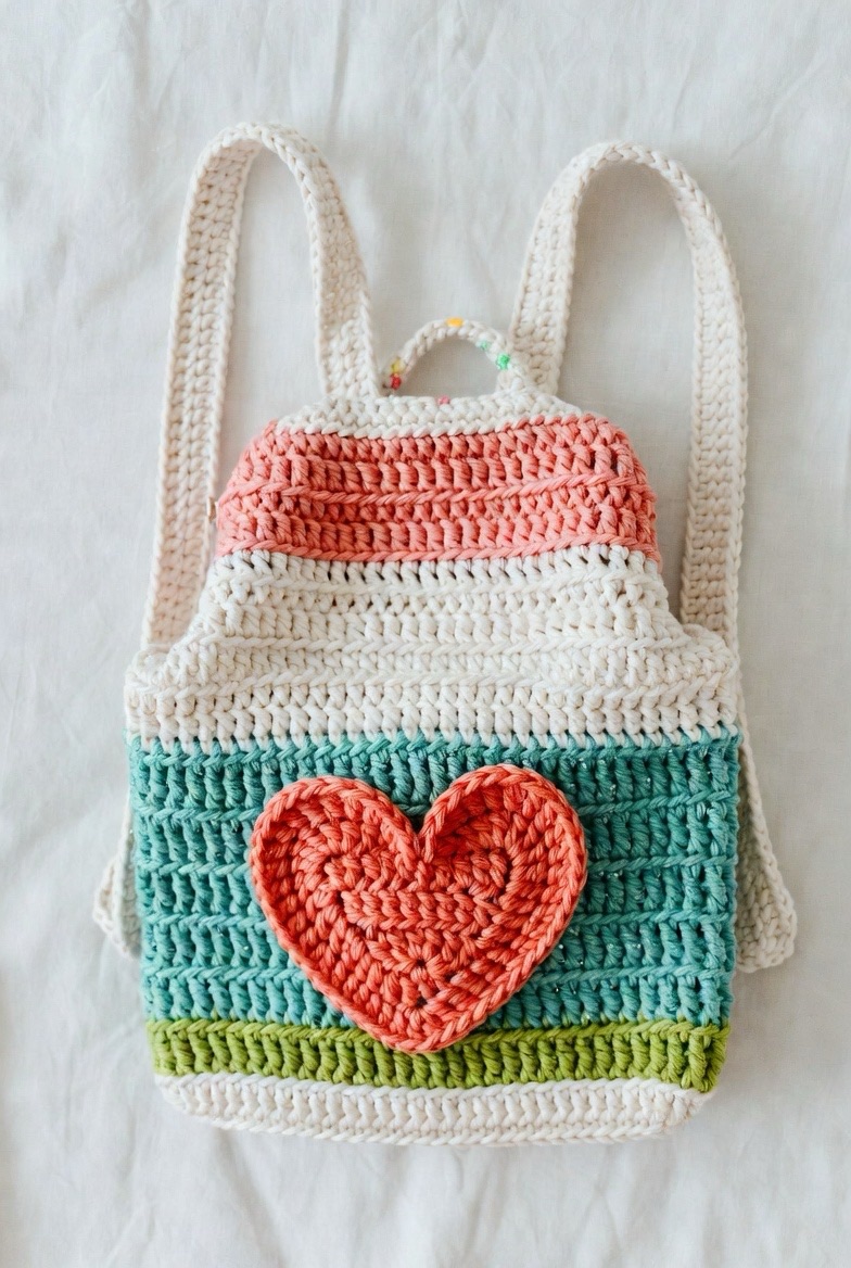 16.) Heart Patch Crochet Backpack for Little Fashionistas