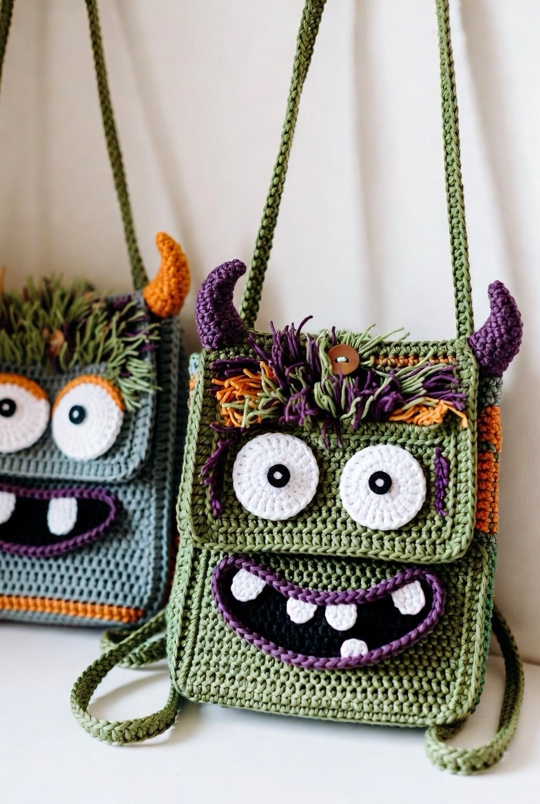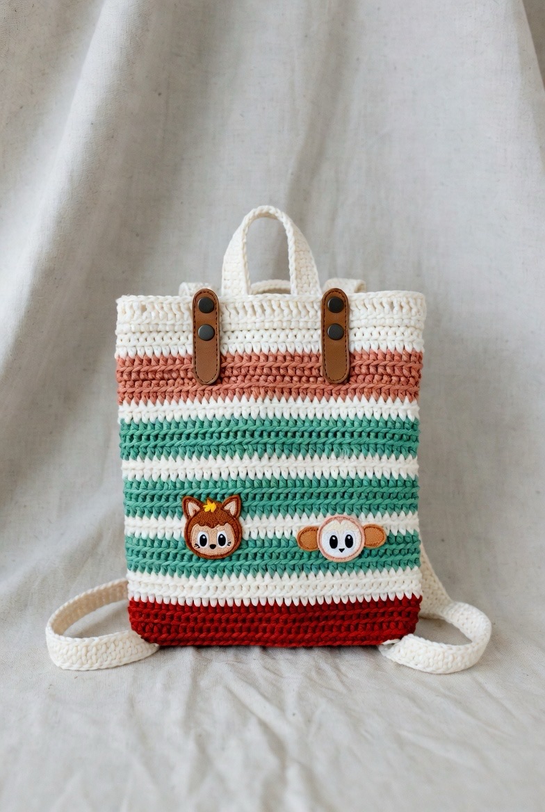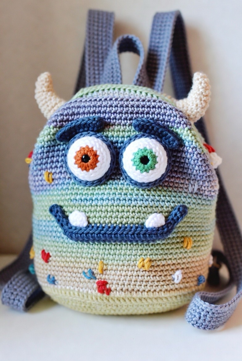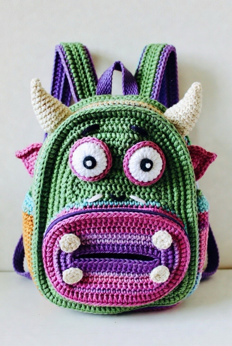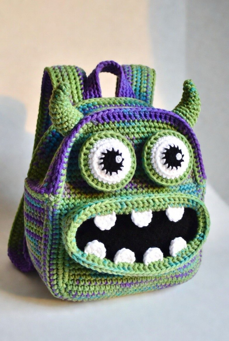 Kids with big imaginations will love this playful monster backpack with quirky eyes and goofy expressions. You can customize the monster’s personality using different colors, horns, or embroidered mouths. The design is both humorous and practical, with a spacious interior and comfortable straps. It’s a great project for using leftover yarn in creative ways. Perfect for school, playdates, or sleepovers, this whimsical bag adds a dose of fun to everyday routines.