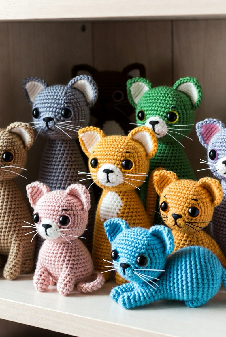 Cat amigurumi toys are small, playful, and full of character. With pointed ears, stitched whiskers, and a little curled tail, they’re irresistible. These are great stash-busting projects and perfect for cat lovers. Make them in realistic shades or bright colors for a whimsical twist. They look adorable lined up on a shelf or desk.