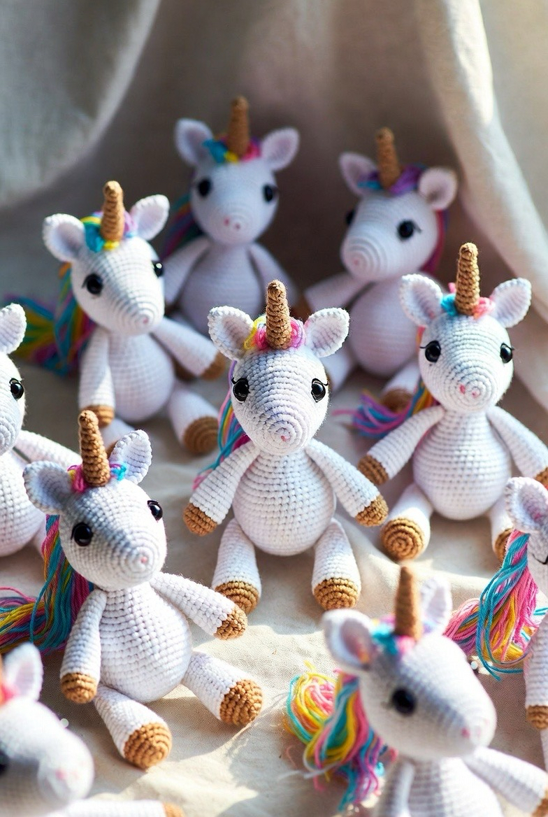 Unicorns are magical, and crochet ones are even better. With tiny horns, colorful manes, and sweet faces, these toys are pure fantasy. They’re perfect for kids’ rooms, gifts, and decorative displays. Use rainbow yarns or soft pastels for a dreamy look.