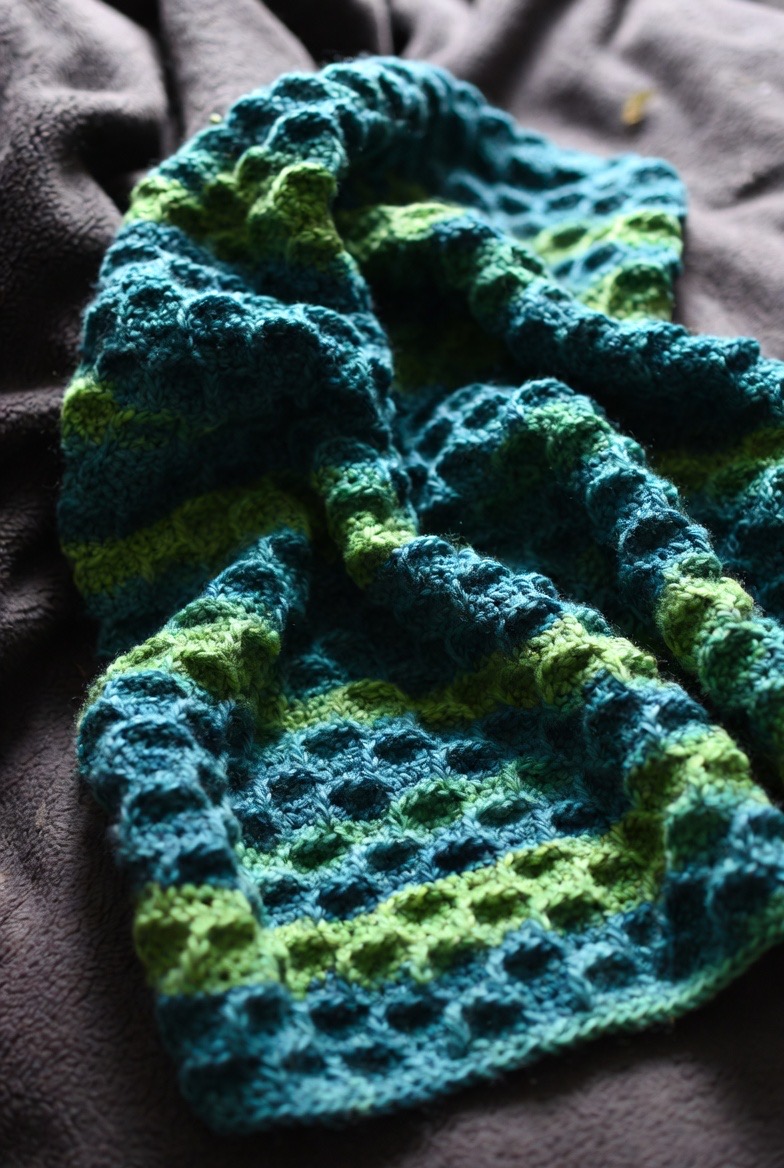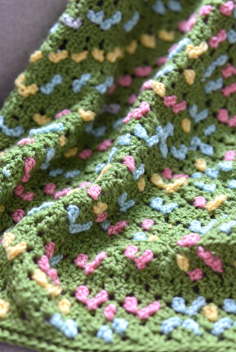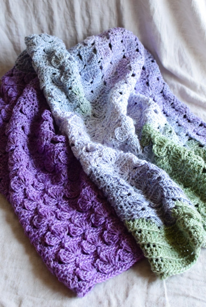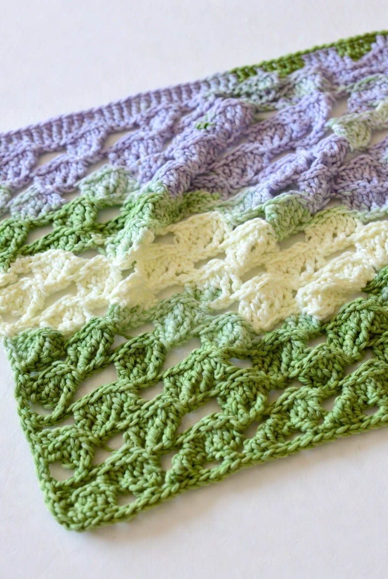 Similar to the bobble stitch, the puff stitch adds wonderful dimension, but it is slightly softer and loftier. By arranging puff stitches in circular clusters, you can create the illusion of small posies or dandelion heads scattered across the fabric. A background of soft green makes these puff flowers pop. Using a variegated yarn for the puff stitches themselves can add instant depth to each little flower without any extra effort. This creates a squishy, comforting fabric that is perfect for a lap throw intended for serious snuggling.