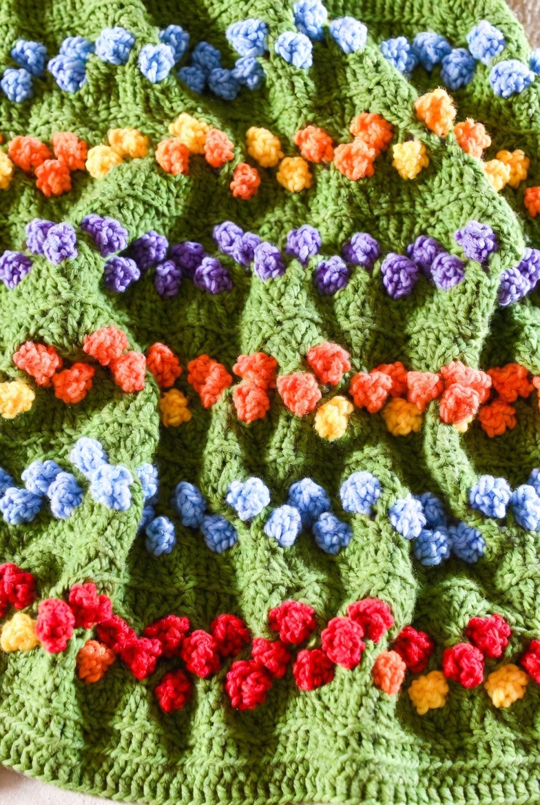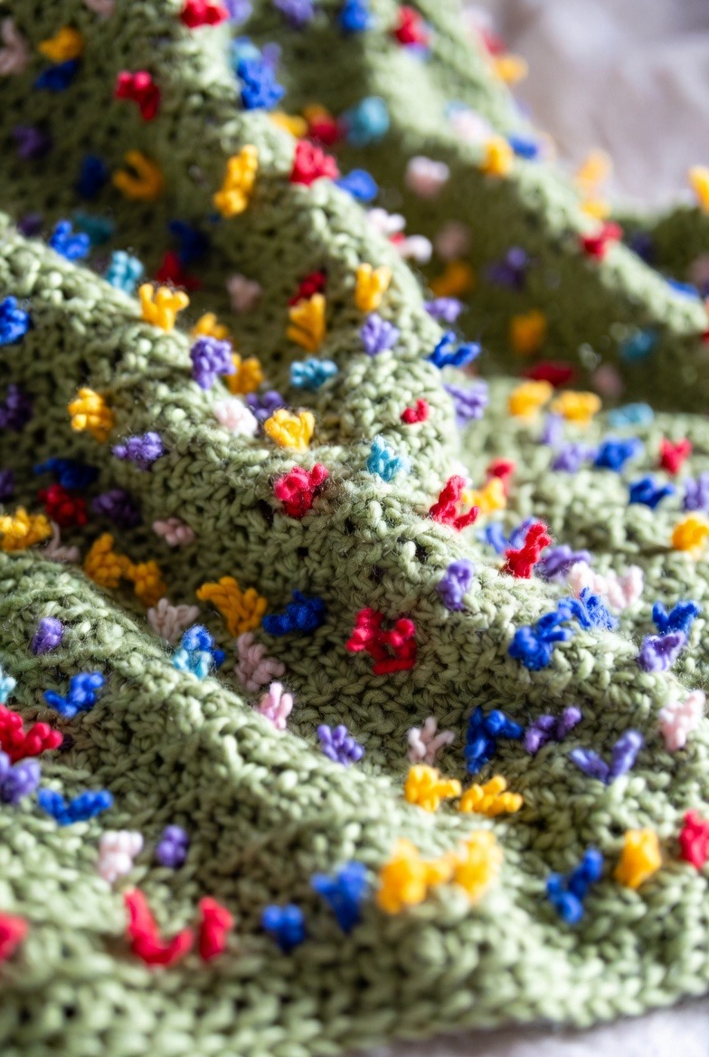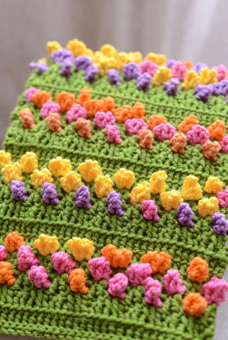 Texture is the star of the show in a bobble stitch meadow blanket. The bobble stitch creates raised, round puffs that are perfect for representing unopened flower buds or dense clusters of clover. You can work rows of green stitches interspersed with rows featuring brightly colored bobbles. The tactile quality of this blanket is irresistible, especially for anyone who loves a sensory experience. It is playful, cheerful, and adds a wonderful architectural element to your home. The bobbles also add a surprising amount of weight and warmth.