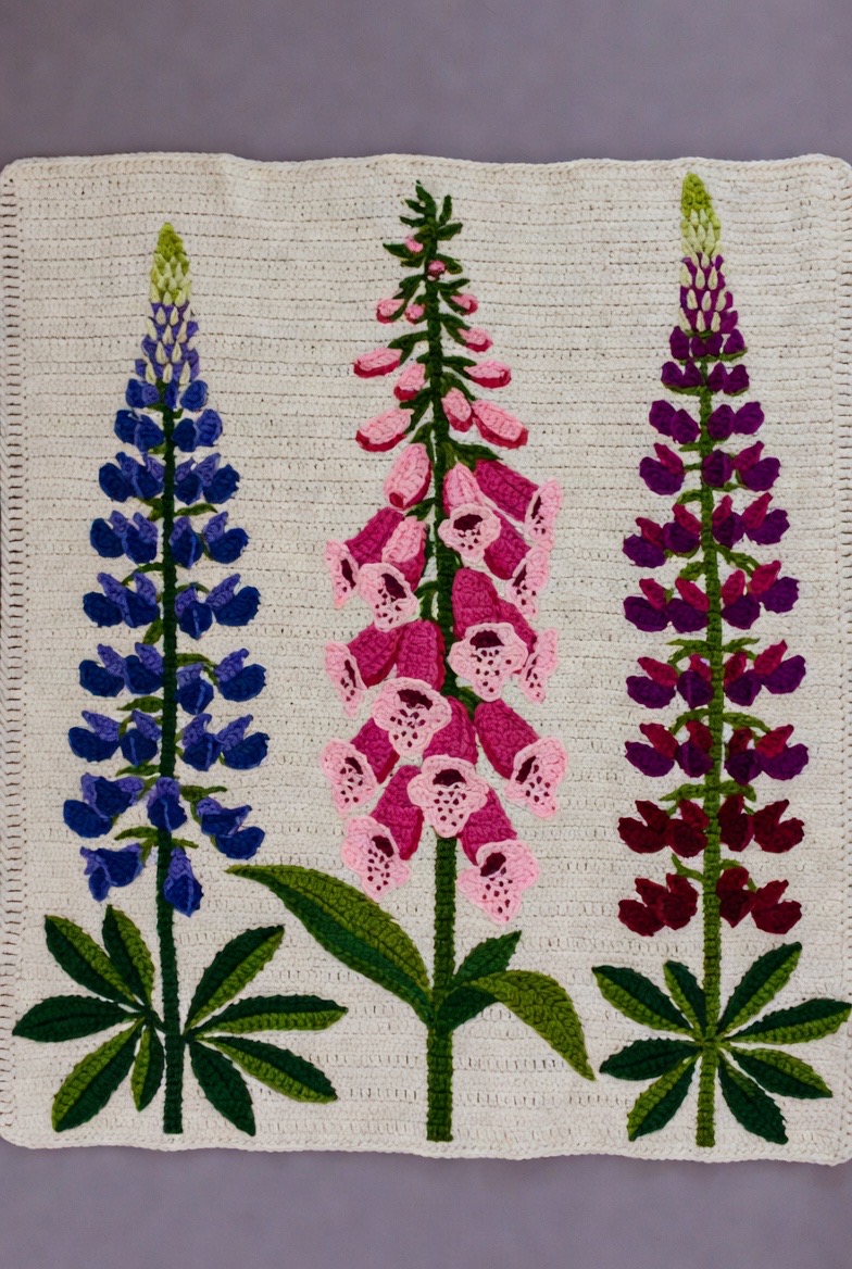 For crafters who enjoy a challenge and love precise design, tapestry crochet offers a way to create detailed floral pictures. You carry multiple colors of yarn along the back of your work, switching colors to create flat, woven images of specific flowers like foxgloves or lupines against a solid background. The result looks almost like a woven rug or a detailed botanical illustration. Because you are carrying yarn, the fabric is thick, warm, and durable, making it excellent for a cozy winter throw that still reminds you of spring.