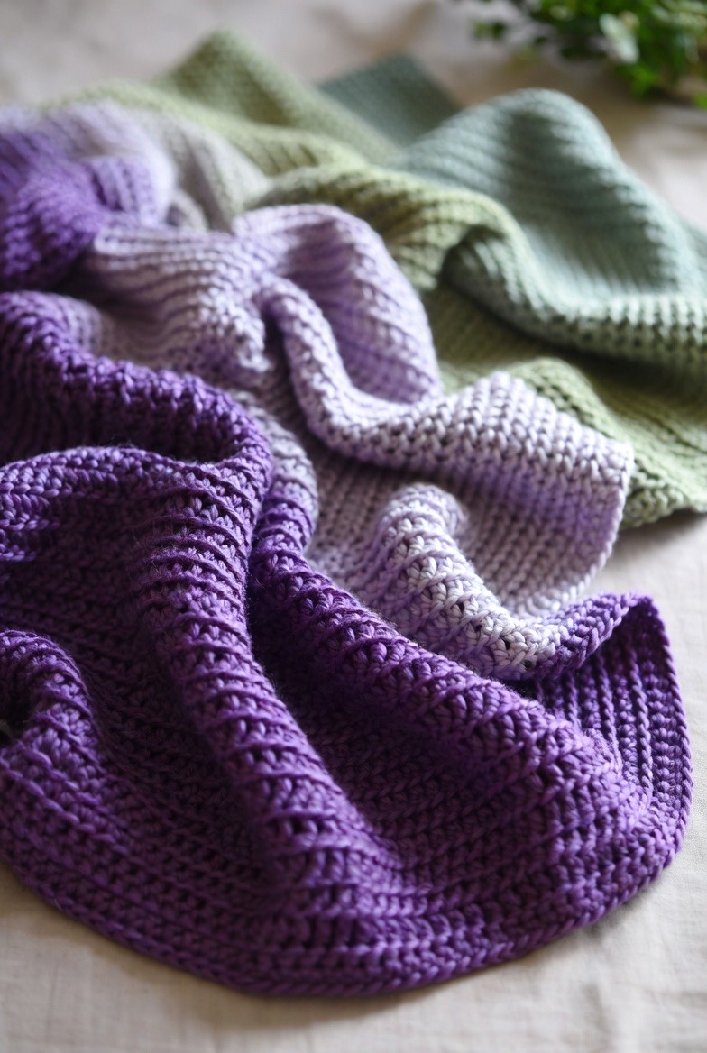 Inspired by the rolling lavender fields of the countryside, this blanket uses a restricted but powerful color palette. The focus is on a gradient that moves from deep, rich purples through lighter lilacs and misty lavenders, eventually fading into soft greens. You can achieve this effect by using yarn with long color changes or by manually changing colors every few rows. The soothing progression of colors is incredibly relaxing to both crochet and look at. It is a sophisticated take on the floral theme that feels calming.