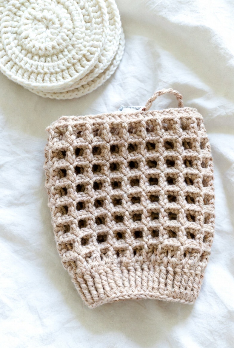 A common struggle in the shower is reaching that one spot in the middle of your back. A long, crochet back-scrubber strap with handles on both ends solves this problem elegantly. By using a textured stitch like the “herringbone” or “alpine” stitch, the strap provides a deep, satisfying scrub that reaches every corner of your skin. This is particularly helpful for preventing “bacne” and ensuring your skin is evenly exfoliated. It’s a functional, sturdy piece of equipment that makes your body care routine feel much more comprehensive and professional.