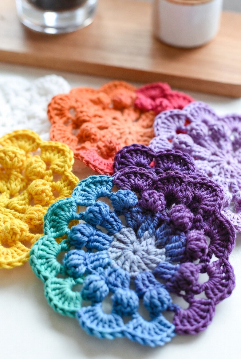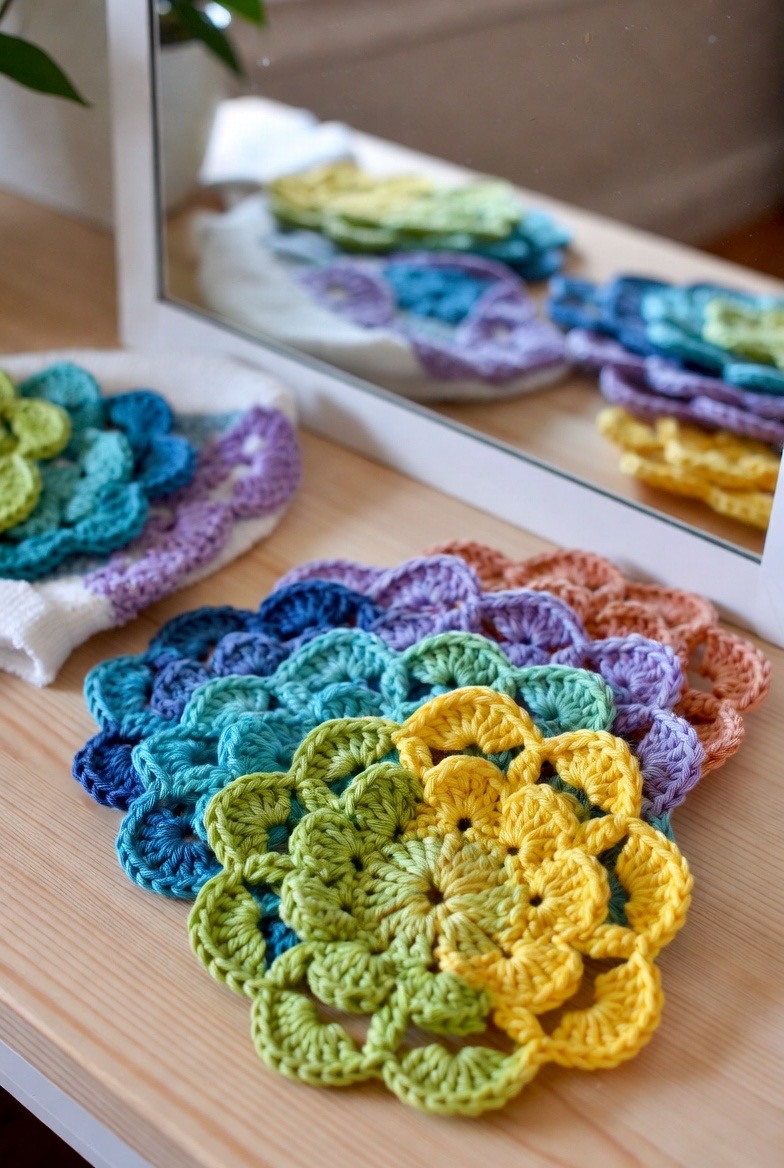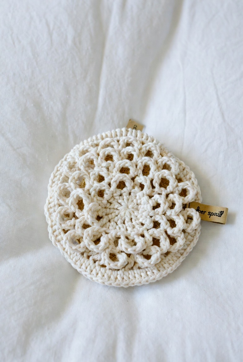 Who says functional can’t be beautiful? The Starburst (or Sunburst) pattern uses a combination of clusters and puff stitches to create a floral, sun-like design. These pads are a favorite on Pinterest because they look like little works of art. Beyond their “Instagram-able” looks, the varied stitch heights provide different levels of pressure on the skin, which can help stimulate lymphatic drainage as you cleanse. Making a set of these in a vibrant “ombre” palette is a great way to bring a pop of joy and color to your morning vanity setup.