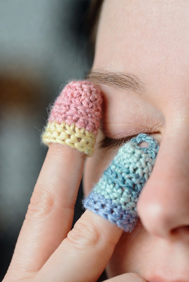 Sometimes a full-sized pad is too bulky for detailed work. The finger-tip scrubbie is a tiny, thimble-like crochet cap that fits perfectly over your index and middle fingers. This allows for incredible precision when cleaning around the delicate eye area or the crevices of the nose. These are also fantastic for applying spot treatments or targeted exfoliation on small areas of congestion. Because they use so little yarn, they are the perfect “scrap-buster” project. They are cute, functional, and make you feel like a professional aesthetician in the comfort of your own home.