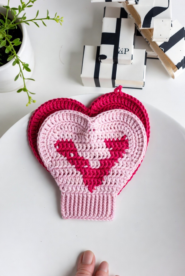 Self-care is an act of self-love, and nothing represents that better than a heart-shaped face pad. These are worked by increasing and decreasing in specific spots to create the iconic “V” shape at the bottom and the “mounds” at the top. While they are undeniably adorable and make for perfect gifts, they are also quite functional; the “point” of the heart is excellent for getting into the inner corners of the eyes. Making a set of these in various shades of pink and red adds a romantic, “Cottagecore” vibe to your bathroom that reminds you to be kind to yourself every day.